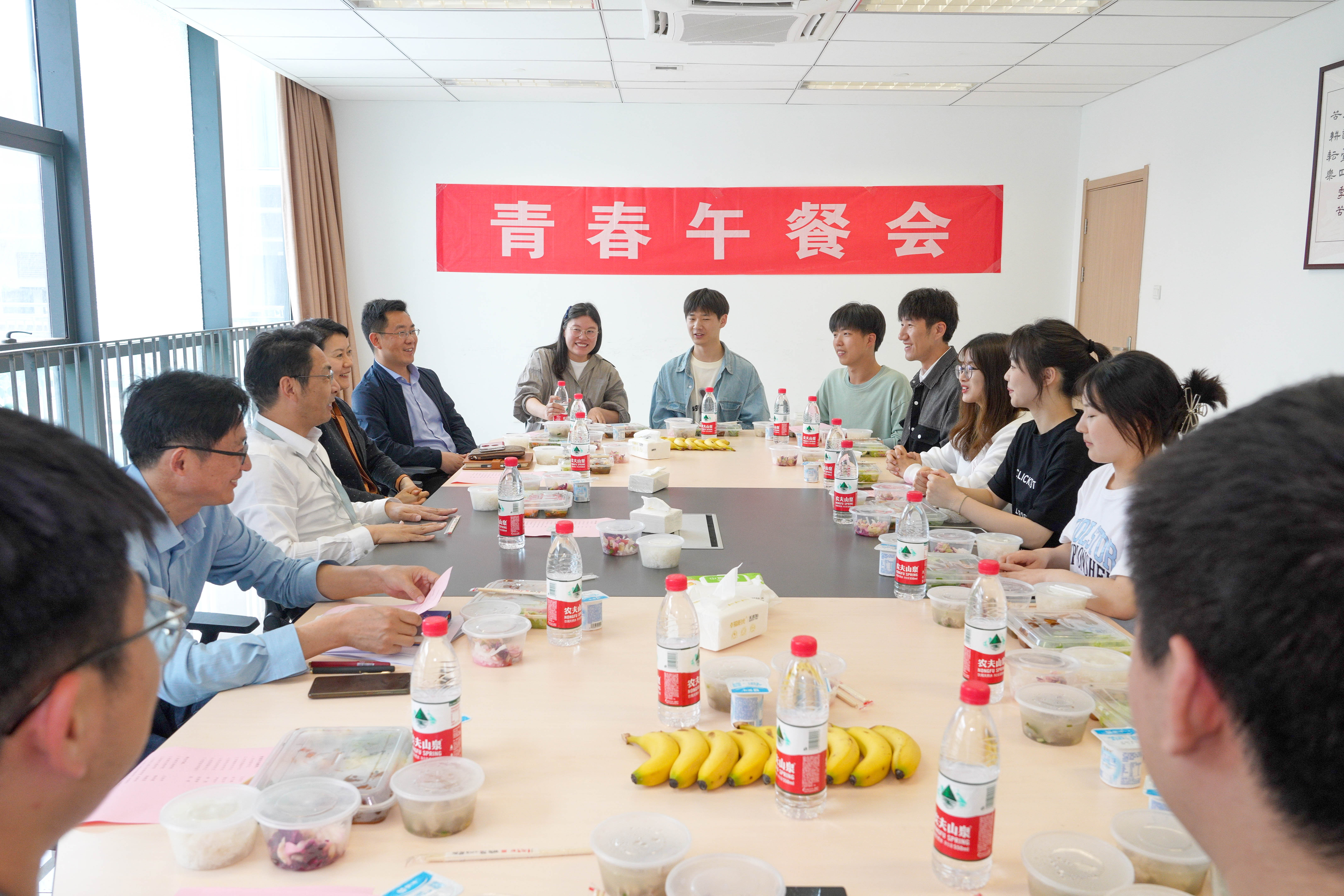 5月4日中午,一场特别的聚餐——青春午餐会在汇心湖校区学生活动中心204会议室举办。在“五四”青年节来临之际,校党委书记王杰才、党委副书记金飞燕与来自各学院的9名青年学生代表共进午餐,共话个人成长与学校发展。教务处、学生处、总务处和团委等有关职能部门负责同志陪同出席。
