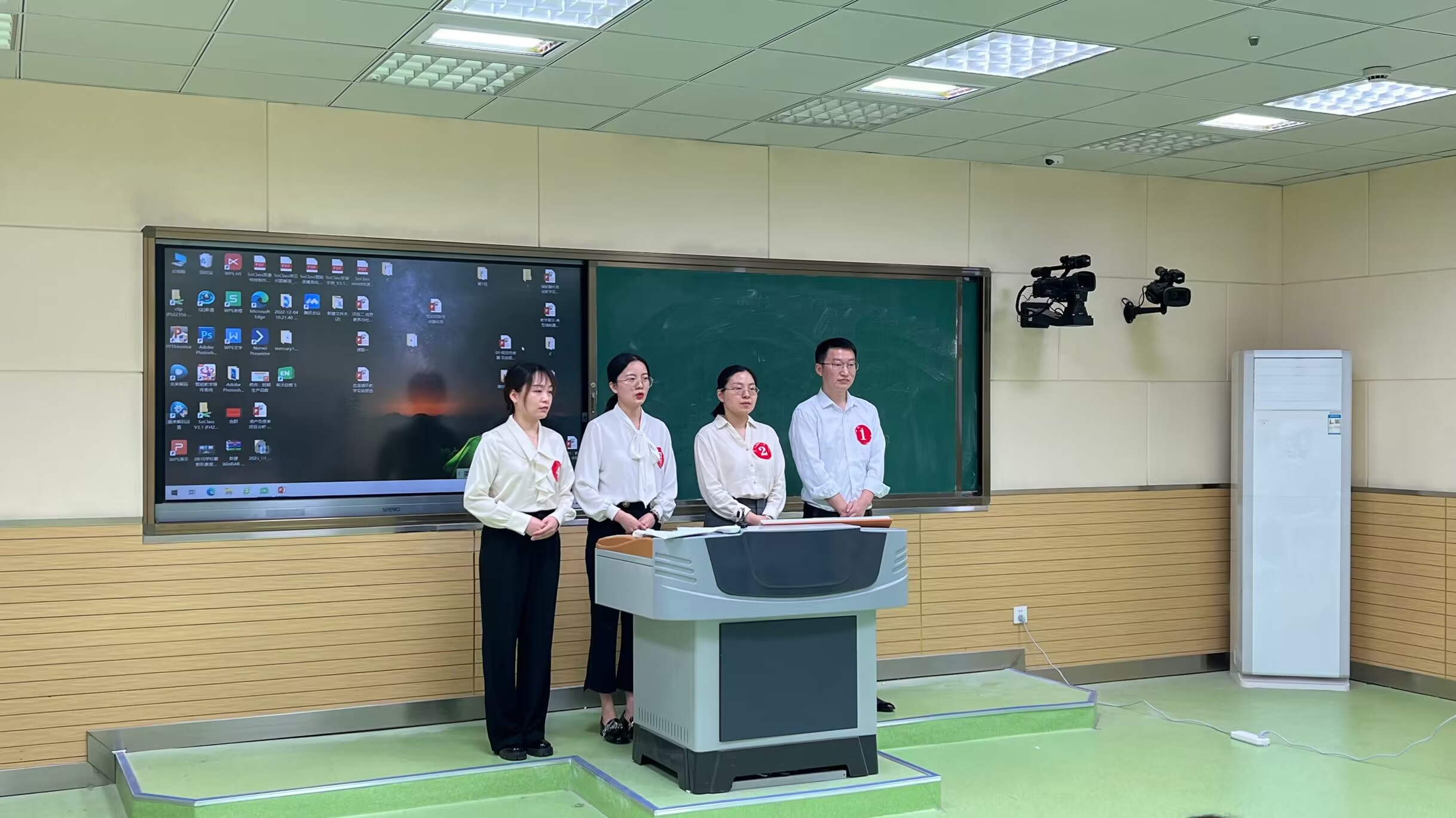 前期,由二级学院选拔及校赛线上初赛的评审,从19组参赛团队中遴选出12组进入校级决赛的角逐。教务处精心准备,完成了参赛团队教学材料的审核整理、比赛场地准备、线上直播等筹备工作。