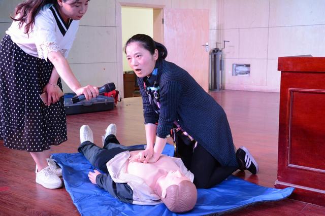 医学分院聂金桃老师讲解心跳复苏术的方法,聂金桃老师用我院人体模型活灵活现的讲解心脏复苏术,讲解中聂老师特别强调心跳复苏的细节,同学们的学习气氛气分活跃,并认真学习老师授予的应急方法。