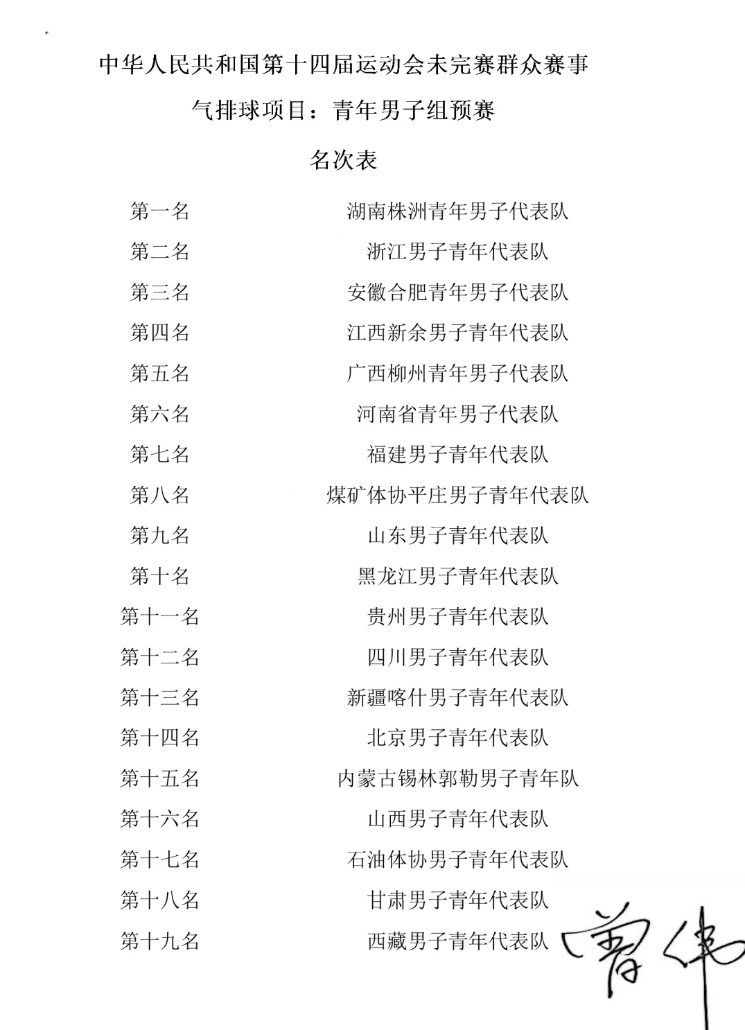 5月10日至15日,由国家体育总局主办、湖南省体育局、株洲市人民政府协办的中华人民共和国第十四届运动会未完赛群众赛事气排球项目(青年男子组)预赛,在湖南省株洲市株洲体育中心举行。本次气排球比赛赛期4天,来自北京、江西、福建、四川、新疆等全国各省(自治区、直辖市)的19支代表队近500名气排球运动员和教练员参加了比赛。