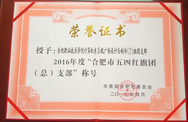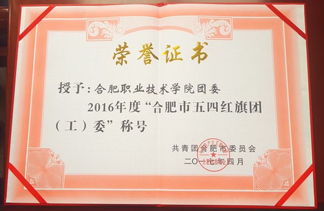 我院团委荣获2016年度“合肥市五四红旗团委”称号,15级广告设计与制作(2)班团支部荣获2016年度“合肥市五四红旗团支部”称号,汽车系团总支副书记钱晶晶荣获2016年度“合肥市优秀共青团干部”称号。
