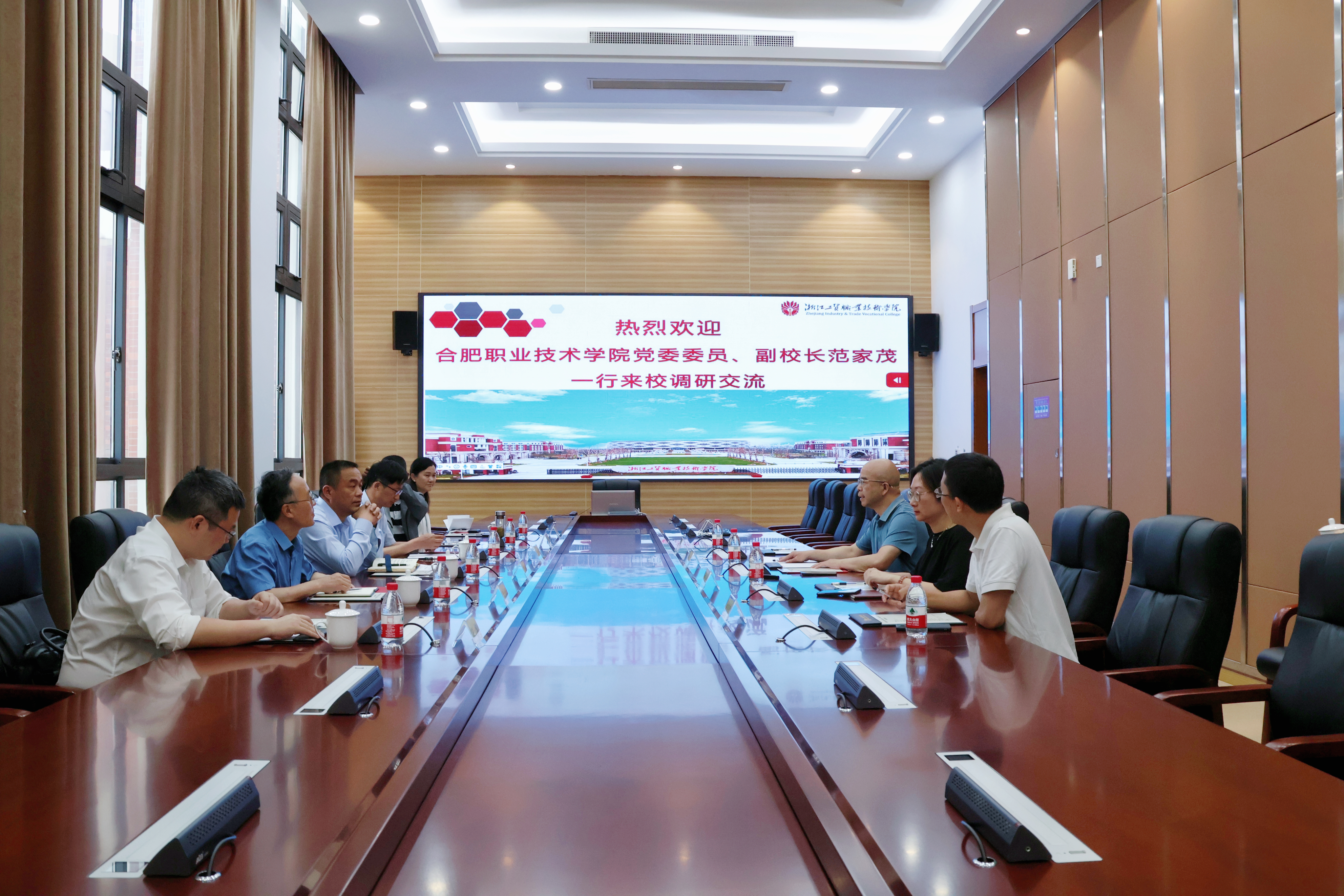 5月22日,由副校长范家茂带队,教务处、科技处及相关二级学院一行6人赴浙江工贸职业技术学院调研学习。浙江工贸职业技术学院副校长汪焰、科研处处长李丹、教务处副处长施星君、光电制造学院院长郑道友等热情接待了AC米兰官网一行。