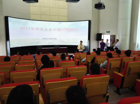 5月9日下午,企业实践活动对接会在学院图书馆二楼报告厅如期进行。三家企业的人力资源部门负责人介绍了企业发展情况、工作生活环境、实践要求等,报名参加实践活动的学生和部分家长在现场与企业代表进行了深入交流。