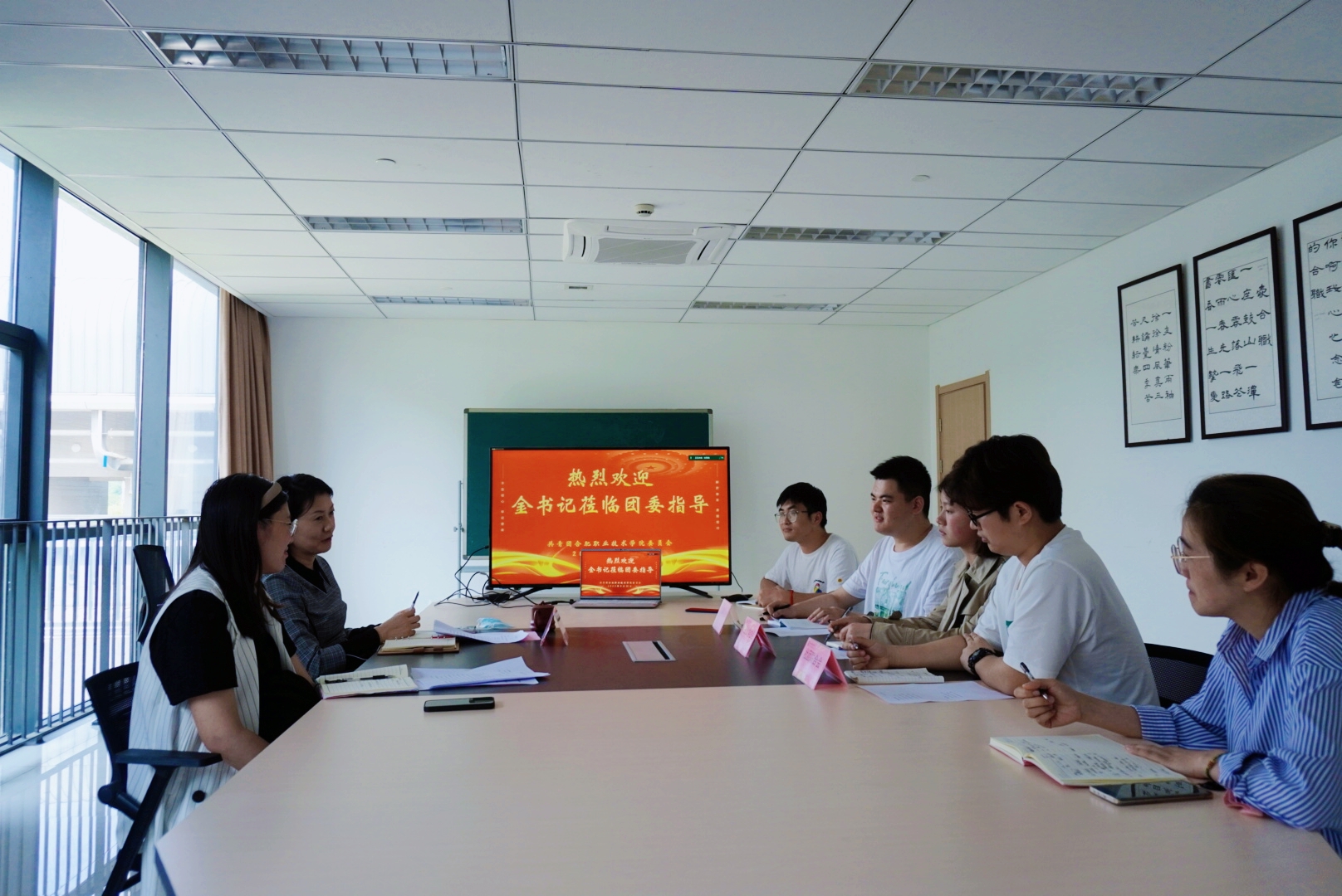 金飞燕书记在认真听取大家的发言后,对团委的各项工作给予充分肯定,她表示共青团工作活力无限、空间无限,并就下一步工作提出四点希望和要求:要加强党建引领,坚持“党建带团建、团建促党建”指导思想,努力将政治引领、思想教育等工作落到实处;要与时俱进、开拓创新。要在引领青年、服务青年的过程中,敏锐把握当代青年的时代特征,以青年需求为导向,创新活动形式,助力青年学生成长;要紧紧围绕学校教育教学中心工作,进一步完善团委各项工作机制,不断提升学校团组织的凝聚力和战斗力;要加强校园文化品牌建设,通过塑造典型人物、建设品牌活动、打造精品项目等方式提升学校共青团工作的影响力和美誉度。