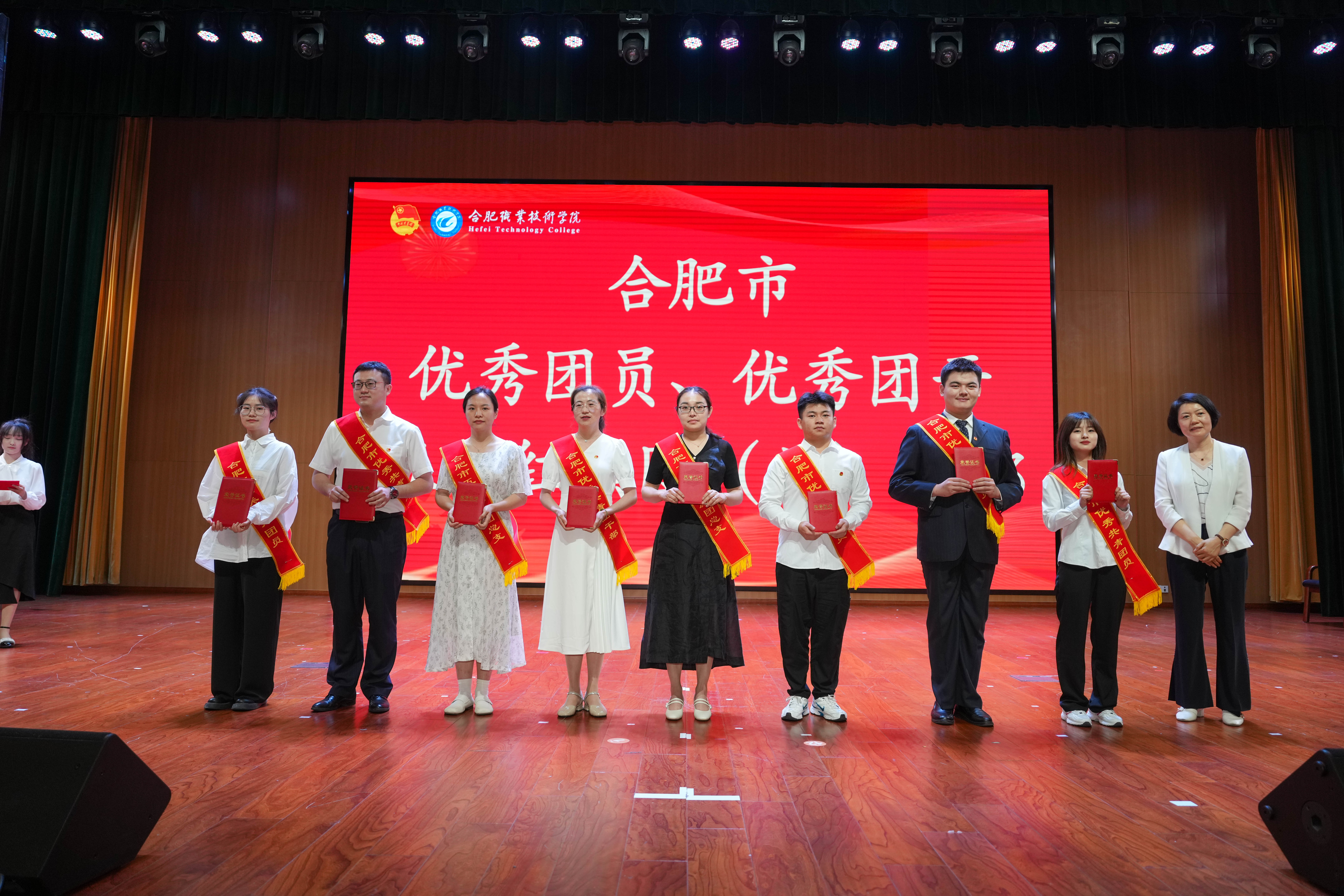 随后,大会对一年以来团内表现优异的先进集体和个人进行了表彰。张如宝为获得校级优秀团员、优秀共青团干部代表颁奖,魏华为获得校级五四红旗团总(支)部代表颁奖,金飞燕为获得合肥市暑期社会实践优秀团队及个人、合肥市优团优干、合肥市五四红旗团总(支)部颁奖。