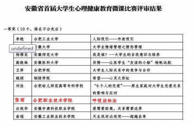 图表9 安徽省首届大学生心理健康教育微课比赛一等奖