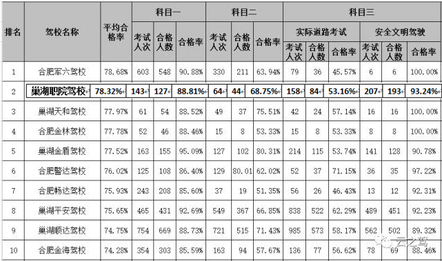 根据合肥市公安局交通警察支队信息网提供的数据,我院驾校5月份综合考试成绩在全市122所驾校中,三项考试合格率名列全市第二。此次排名统计以科目一考试、科目二考试、科目三考试(道路考试、安全文明驾驶)综合评分排名,其中科目二考试合格率我院驾校以骄人的成绩荣登全市第一。