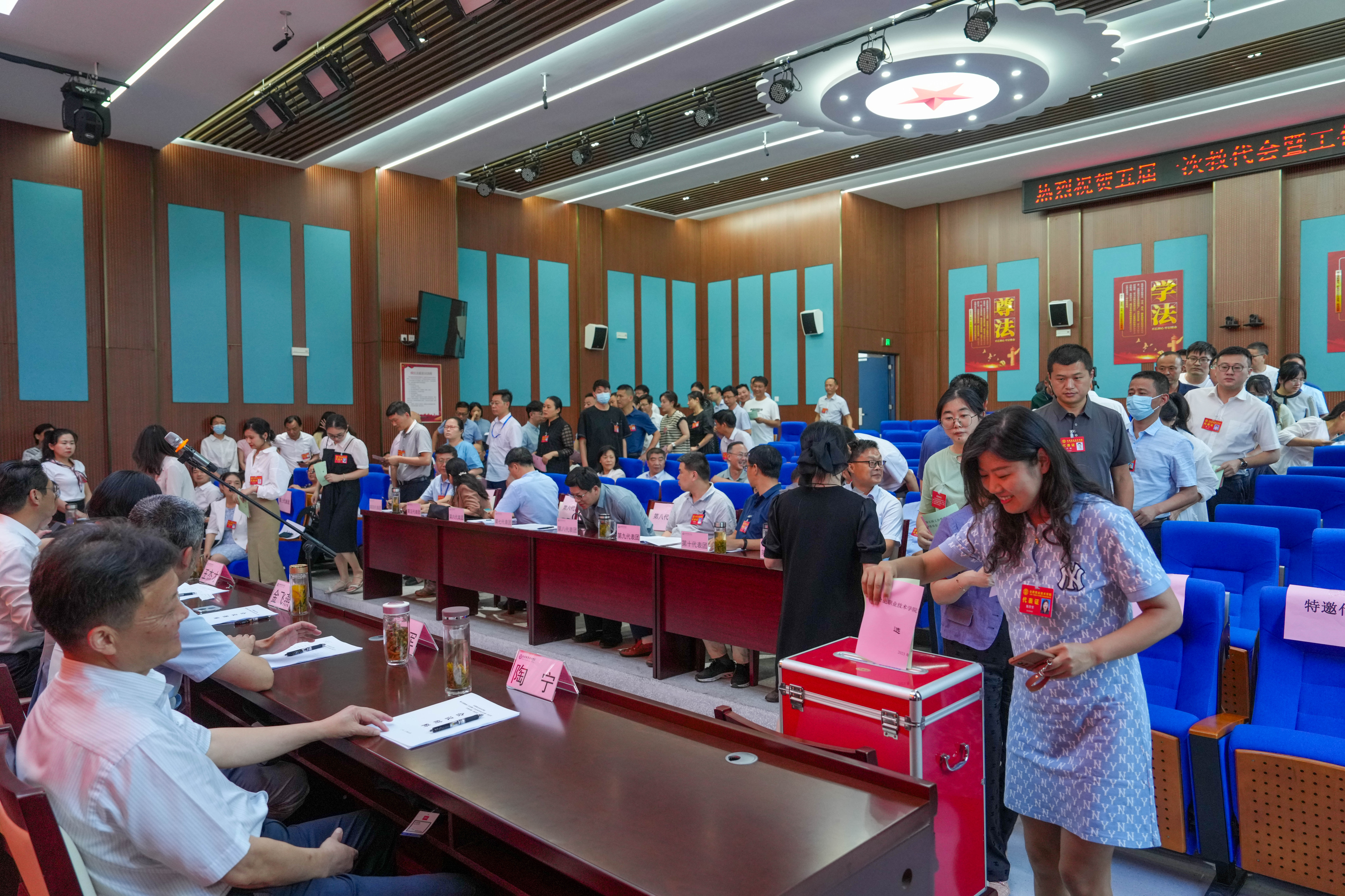 6月26日,AC米兰官网第五届教职工代表暨工会会员代表大会第一次会议在AC米兰官网汇心湖校区思政馆召开。校党委书记王杰才、校长檀明等学校班子成员及第五届教职工代表暨工会会员代表出席大会。合肥市文教工会主席胡云祥出席开幕式并致辞。部分特邀代表和列席代表参加了会议。
