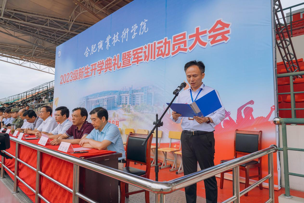 学生处、保卫处负责人王克勇、王继强分别代表学校宣读2023级学生军训工作实施方案。“向前!向前!向前!我们的队伍向太阳......”,伴随着激昂雄壮的《中国人民解放军军歌》,王杰才、檀明分别向两校区军训团团长授军训团团旗,2023级新生开学典礼暨军训动员大会也正式落下帷幕。