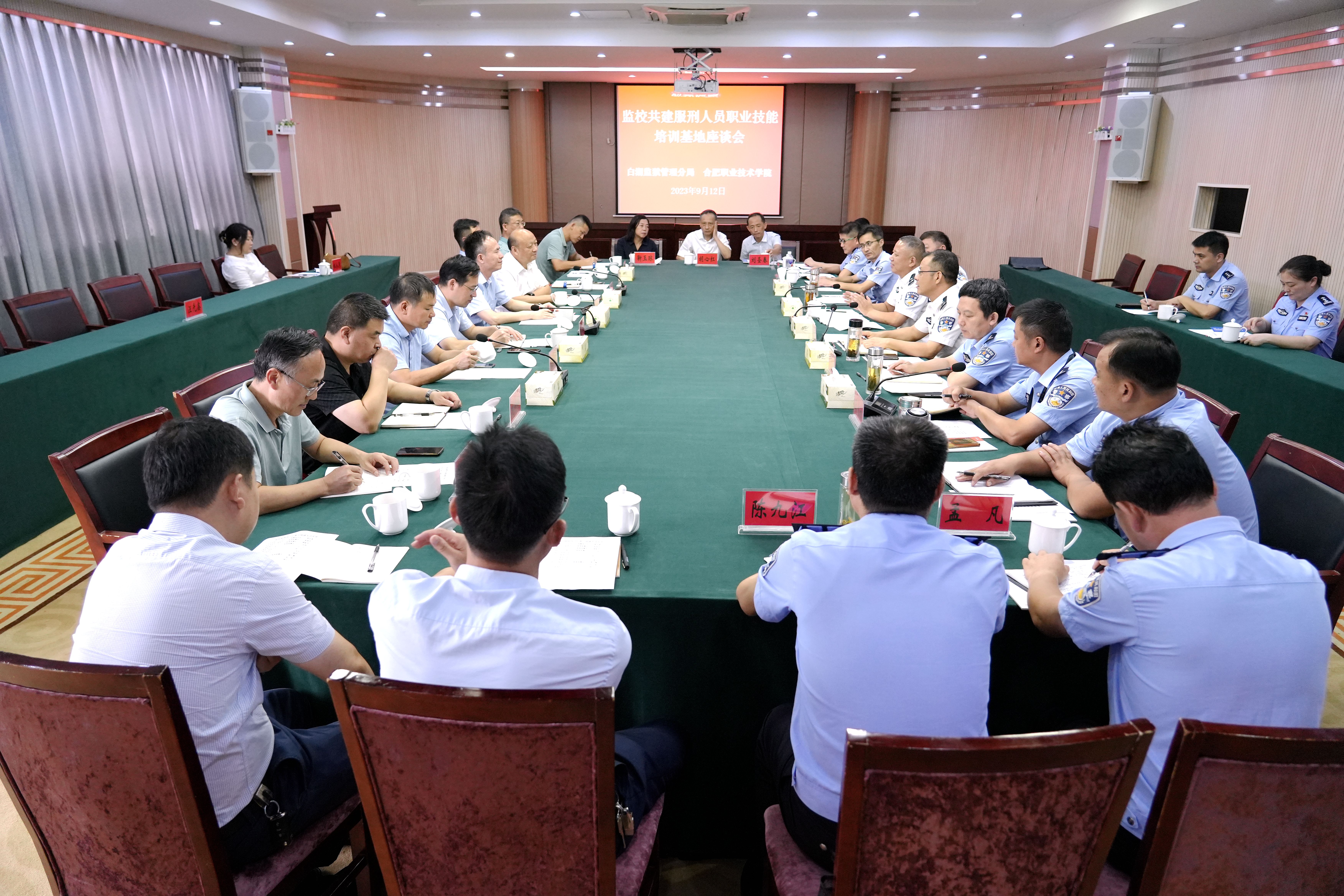近日,校党委副书记、校长檀明一行前往安徽省白湖监狱管理分局考察调研,双方就加强监校合作,提升服刑人员职业技能培训质量等内容进行座谈交流。白湖监狱管理分局党委副书记、局长梁本喜,副局长俞晓东全程陪同。