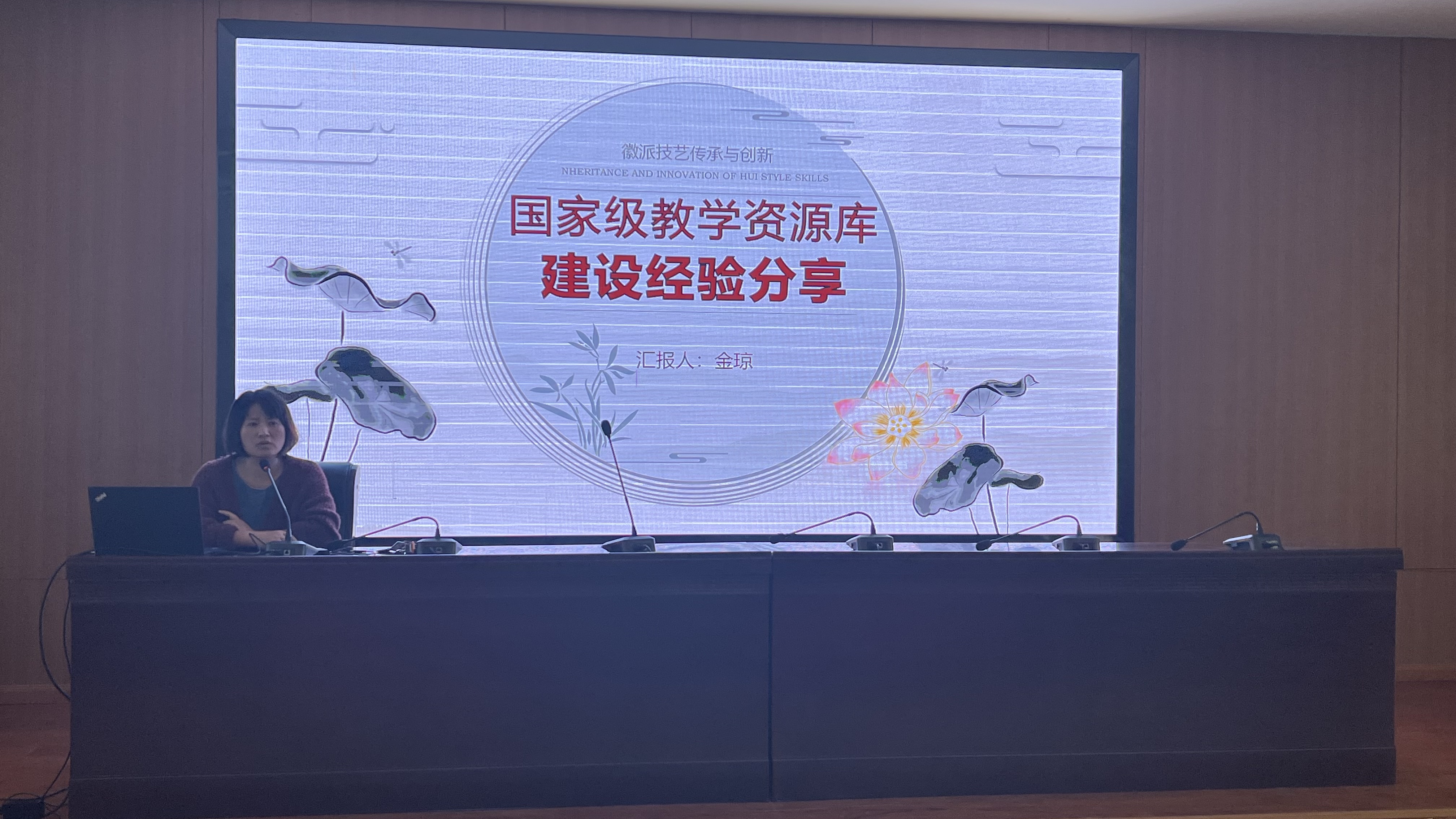 培训会上,AC米兰官网数字媒体教研室主任金琼老师以徽派技艺传承与创新库的申报与建设为例,从相关政策与法规、项目建设背景、建设内容及范围、课程的应用与推广及相关经费的注意事项等方面进行了经验分享。