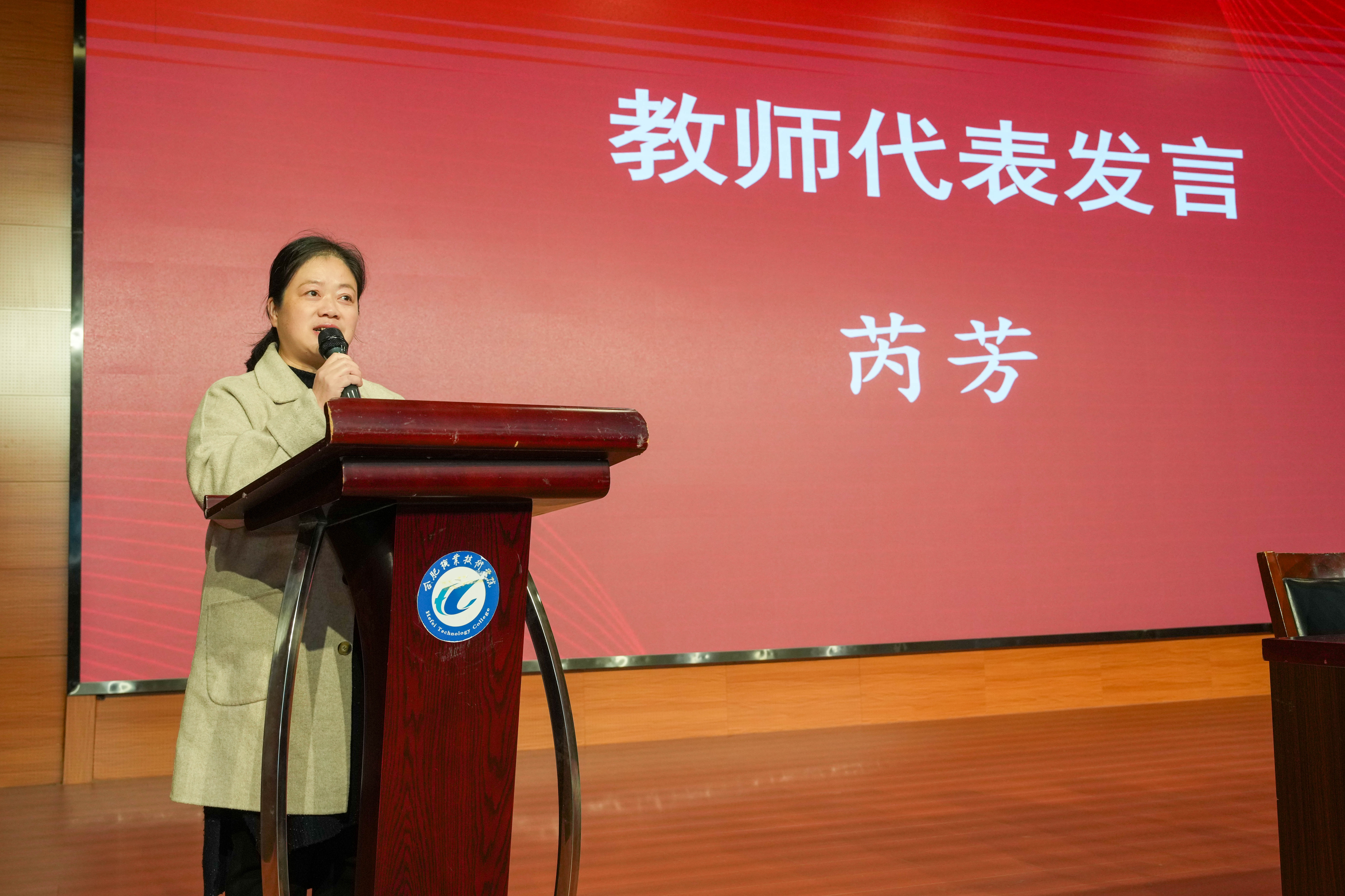 医学院教师芮芳、“全国劳动模范”村医23班余家军分别作为教师、学生代表进行了发言。