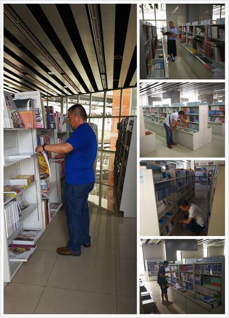 七月中旬的北京,酷暑难当,老师们不辞辛苦,穿梭于各大书城与出版社之间,建筑工程学院教研室主任崔辉更是兢兢业业、率先垂范,一个挑选间下来已是汗流浃背,深深感染与激励着其他年轻教师。经过老师们连续奋战、精挑细选,在三天的时间里共选书10000余种,30000余册。