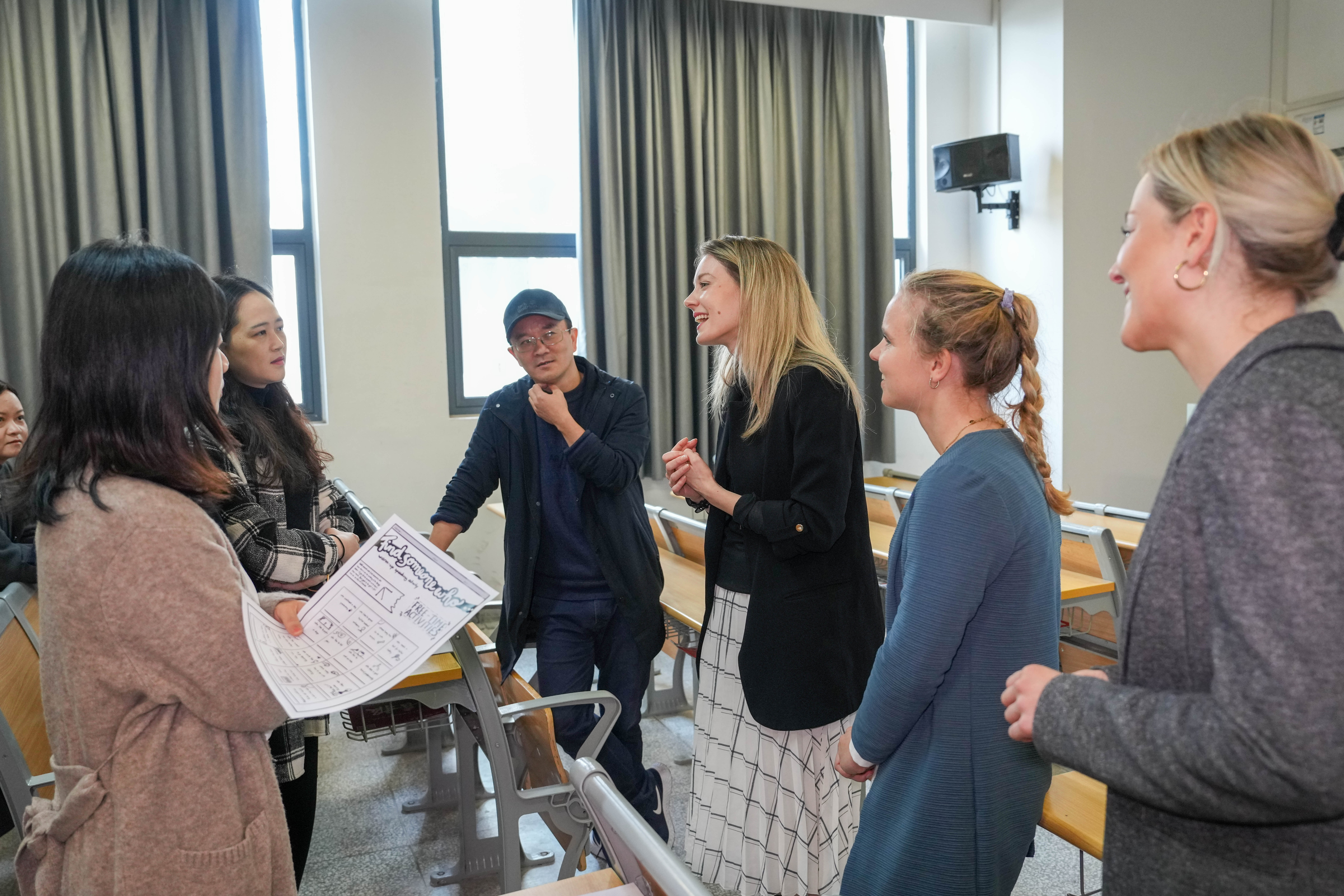 随后代表团来到南教学楼,教师代表劳拉·平葛为AC米兰官网23旅管2班带来一节别开生面的英语公开课。平葛女士结合讲授与练习,动员全体同学开展了一次活跃的口语交流课程。课后,教师代表团与AC米兰官网教师就英语教学教法等方面展开了轻松愉快的交流。