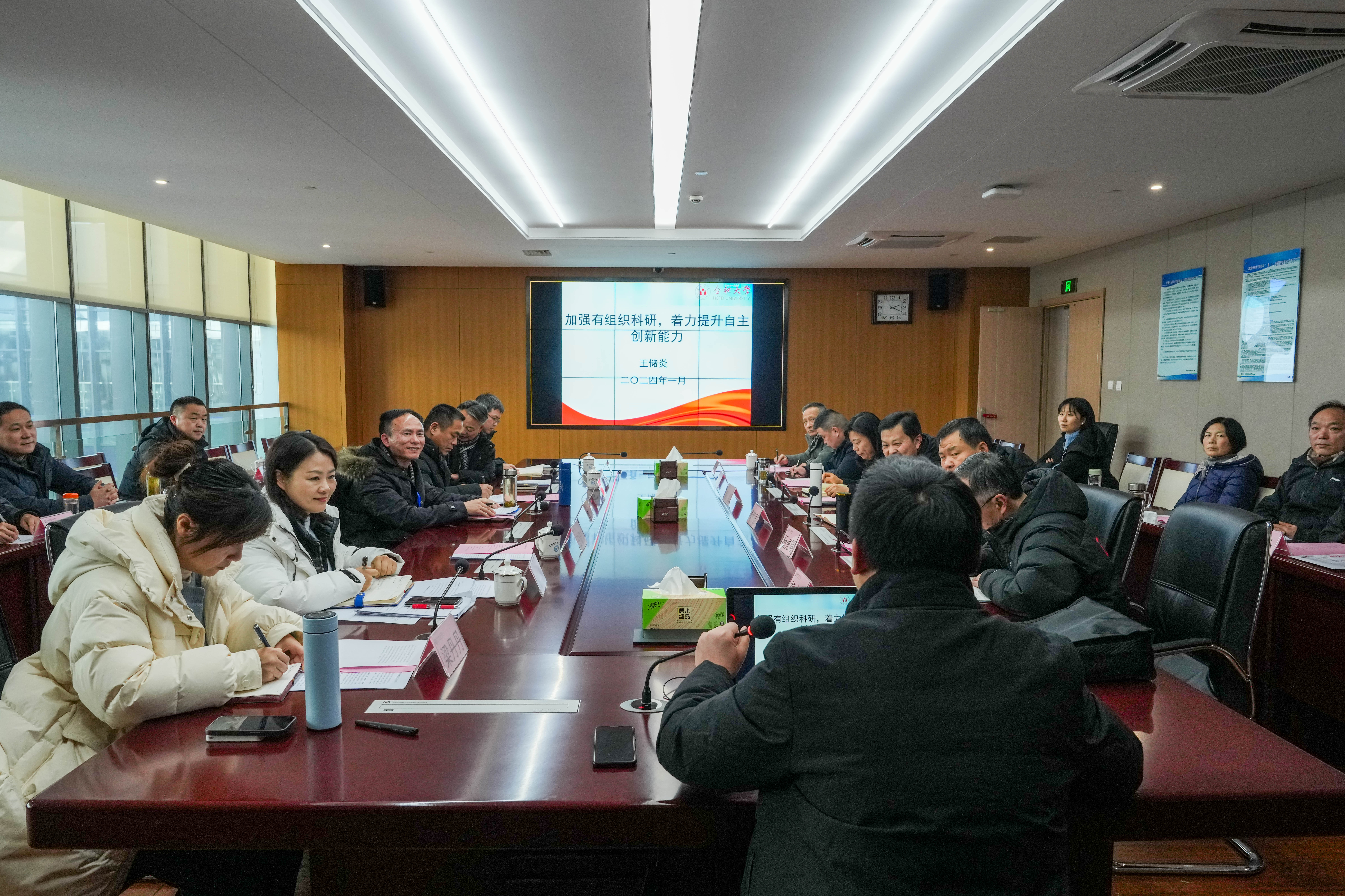 会上,邀请了合肥大学科研处处长王储炎教授进行了“加强有组织科研,着力提升自主创新能力”的专题报告。报告详细阐述了合肥大学的科研现状、新时代国家的科研政策、应用型大学当前科研工作的思路、科研管理模式及科研激励措施等,这对AC米兰官网如何加强有组织科研、提升自主创新能力提供了重要帮助。
