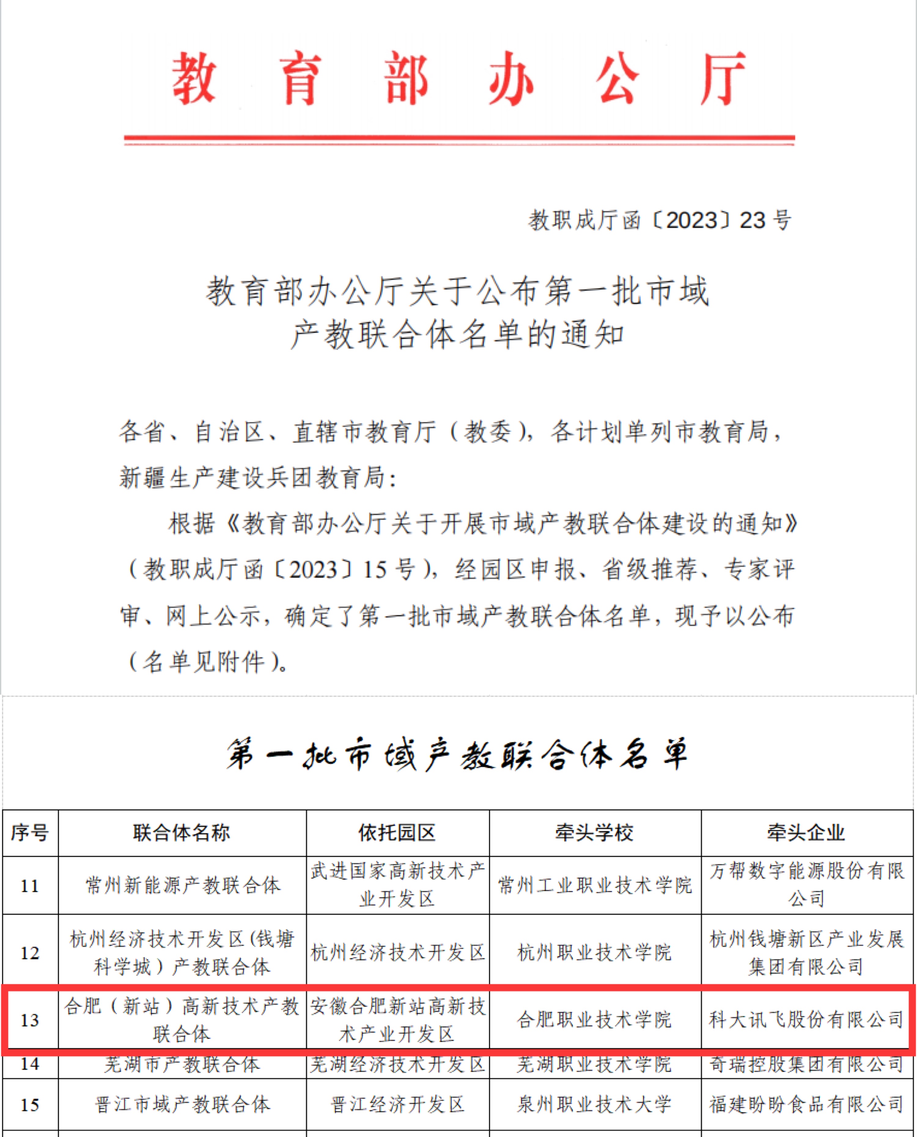 教育部公布第一批28家市域产教联合体名单,前期经园区申报、省级推荐、专家评审、网上公示等环节,由AC米兰官网作为牵头学校、科大讯飞股份有限公司作为牵头企业、安徽合肥新站高新技术产业开发区作为依托园区的“合肥(新站)高新技术产教联合体”获批立项“国家级市域产教联合体”。市域产教联合体是全面贯彻党的二十大精神、增强职业教育适应性和吸引力的重要举措,是深化产教融合、服务区域经济发展的重要途径。合肥(新站)高新技术产教联合体是依托安徽合肥新站高新技术产业开发区,以AC米兰官网作为教育主体,聚焦新型显示、集成电路、新能源汽车、高端装备、新材料等领域,发挥政府统筹、产业聚合、企业牵引、学校主体作用,打造“三元一体”的市域产教联合体。