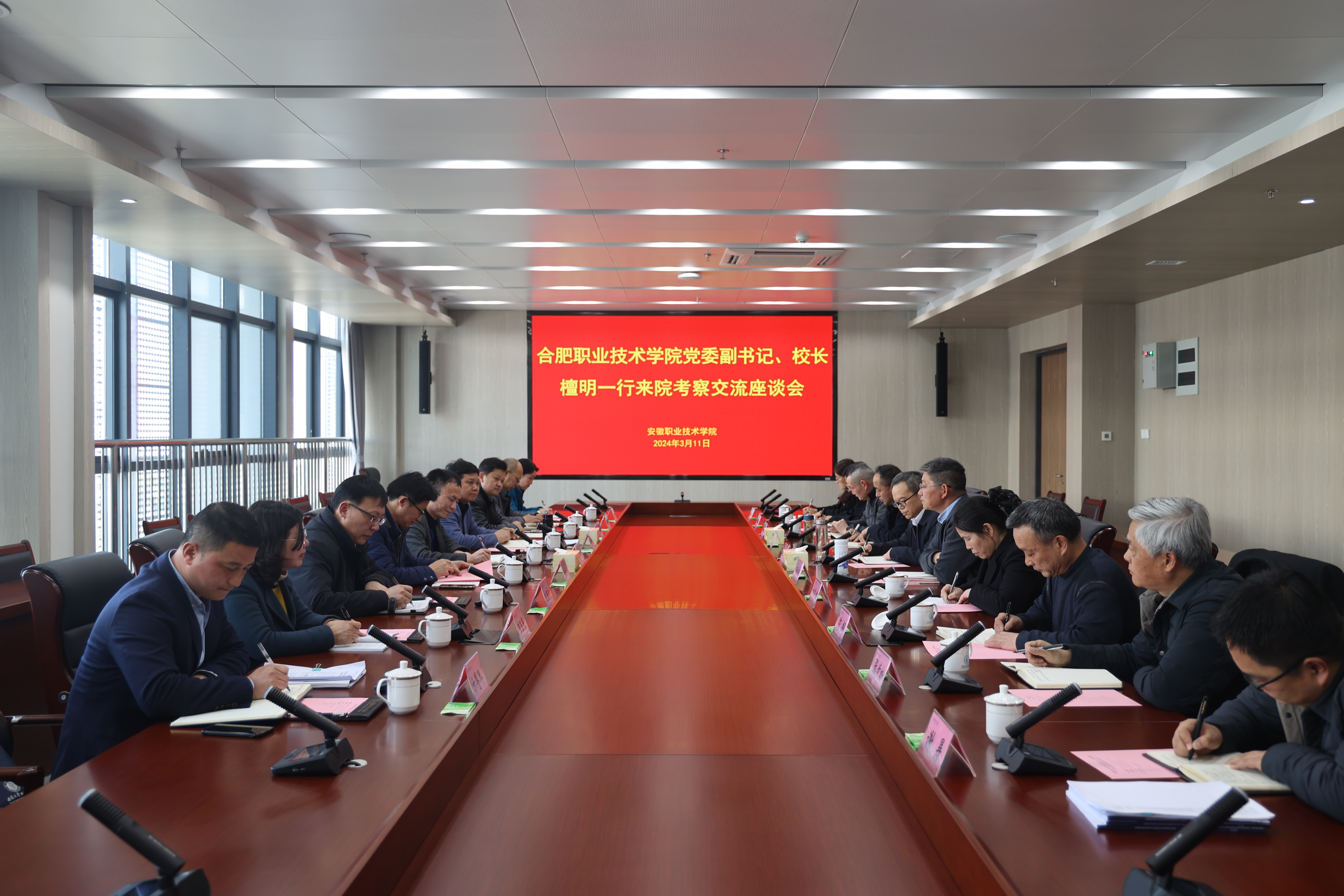 为更好学习安徽职业技术学院在创建职教本科工作中的好经验、好做法,3月11日,AC米兰官网党委副书记、校长檀明带领相关职能部门负责人一行赴安徽职业技术学院开展考察并座谈交流,安徽职业技术学院党委副书记、校长盛鹏,副校长杨林国热情接待AC米兰官网一行。