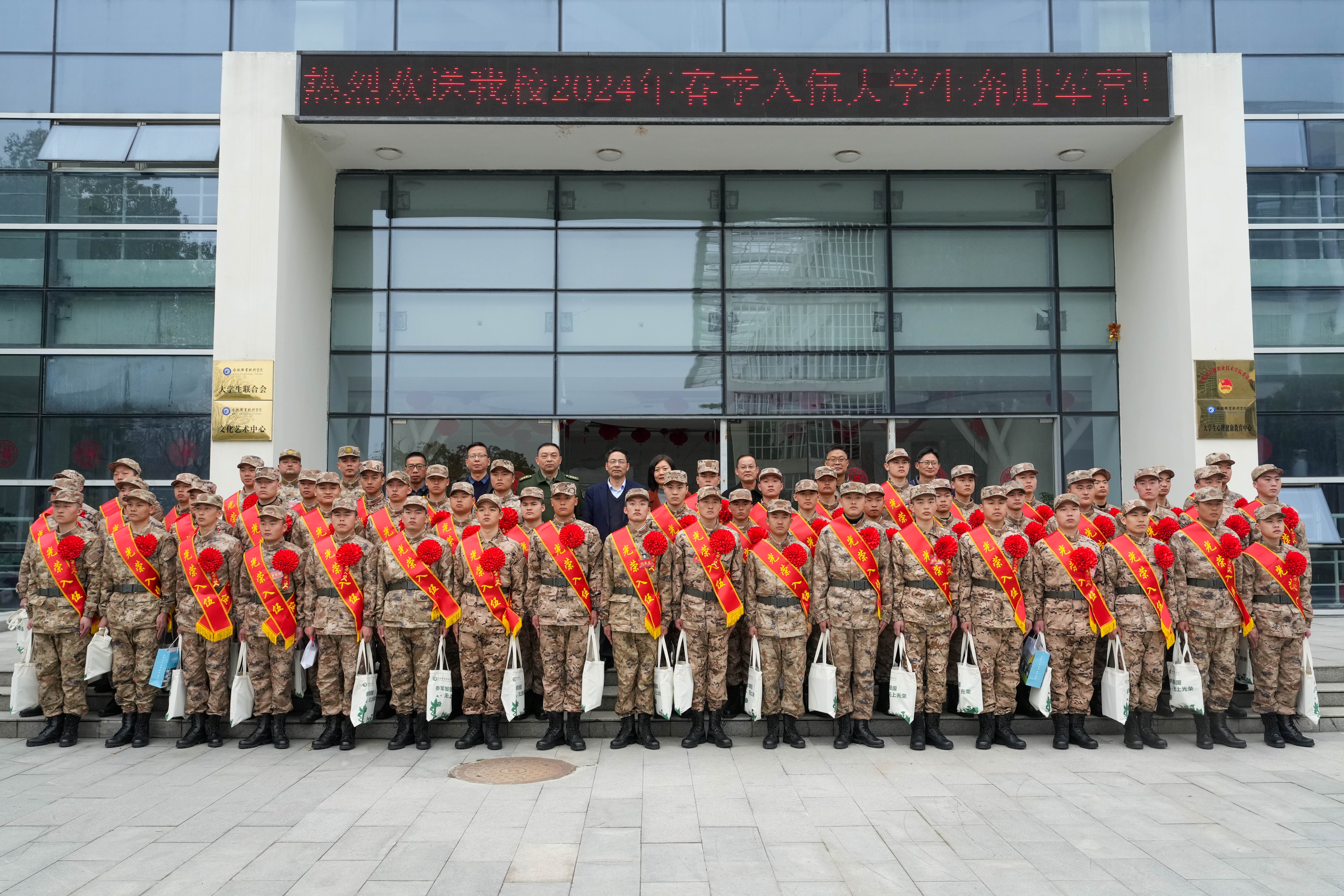 会后,学校领导和人武部领导与全体春季入伍新兵一起合影留念。