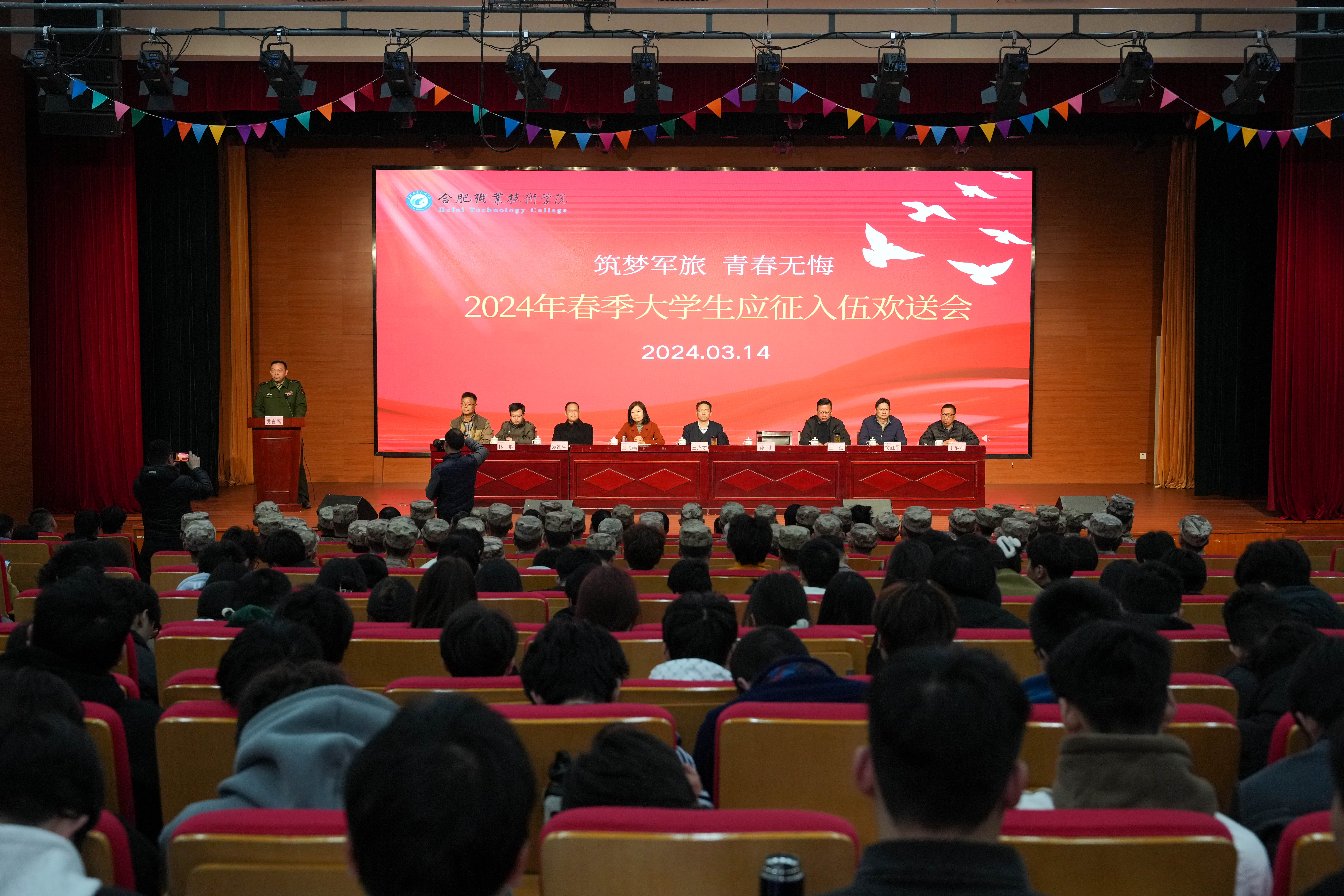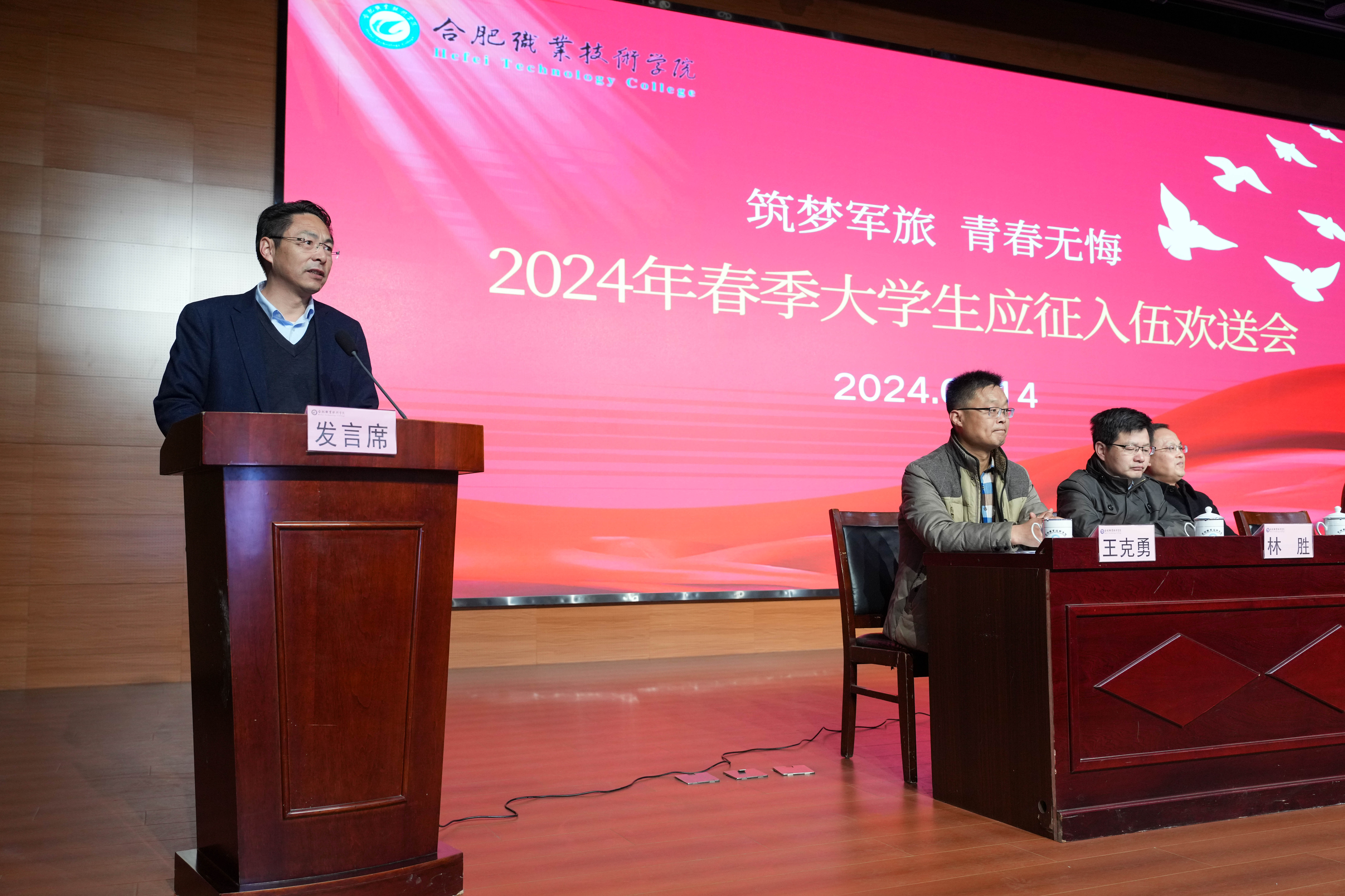 3月14日上午,AC米兰官网在巢湖校区大学生活动中心礼堂举办“筑梦军旅 青春无悔”2024年春季新兵入伍欢送会。校党委书记王杰才出席会议并讲话,巢湖市委常委、人武部部长孙健应邀出席,会议由校党委副书记金飞燕主持。
