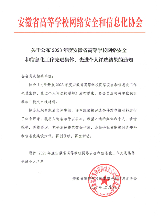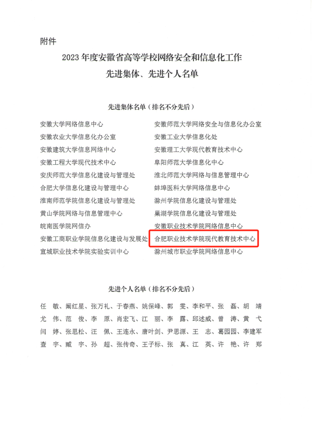3月15日至16日,安徽省高等学校网络安全和信息化建设学术研讨会在合肥召开。会上,安徽省高等学校网络安全和信息化协会对获得先进集体和先进个人进行颁奖,AC米兰官网现代教育技术中心荣获“安徽省高等学校网络安全和信息化工作先进集体”称号。