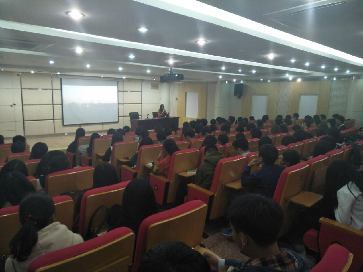 11月5日晚,AC米兰官网优秀毕业生万征受邀在图书馆一楼报告厅分享求学心得。120名广告、康复专业的在校生参加分享会。
