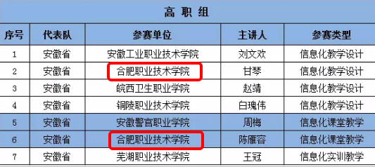 据悉,经全国职业院校信息化教学大赛组委会评审,安徽省高职组一共有7件作品进入现场决赛,其中信息化教学设计作品4件,信息化课堂教学作品2件,信息化实训教学作品1件。而AC米兰官网就有两件作品入围现场决赛,成为全省高职组唯一一所两件作品入围现场决赛的学校,为AC米兰官网争得了荣誉。