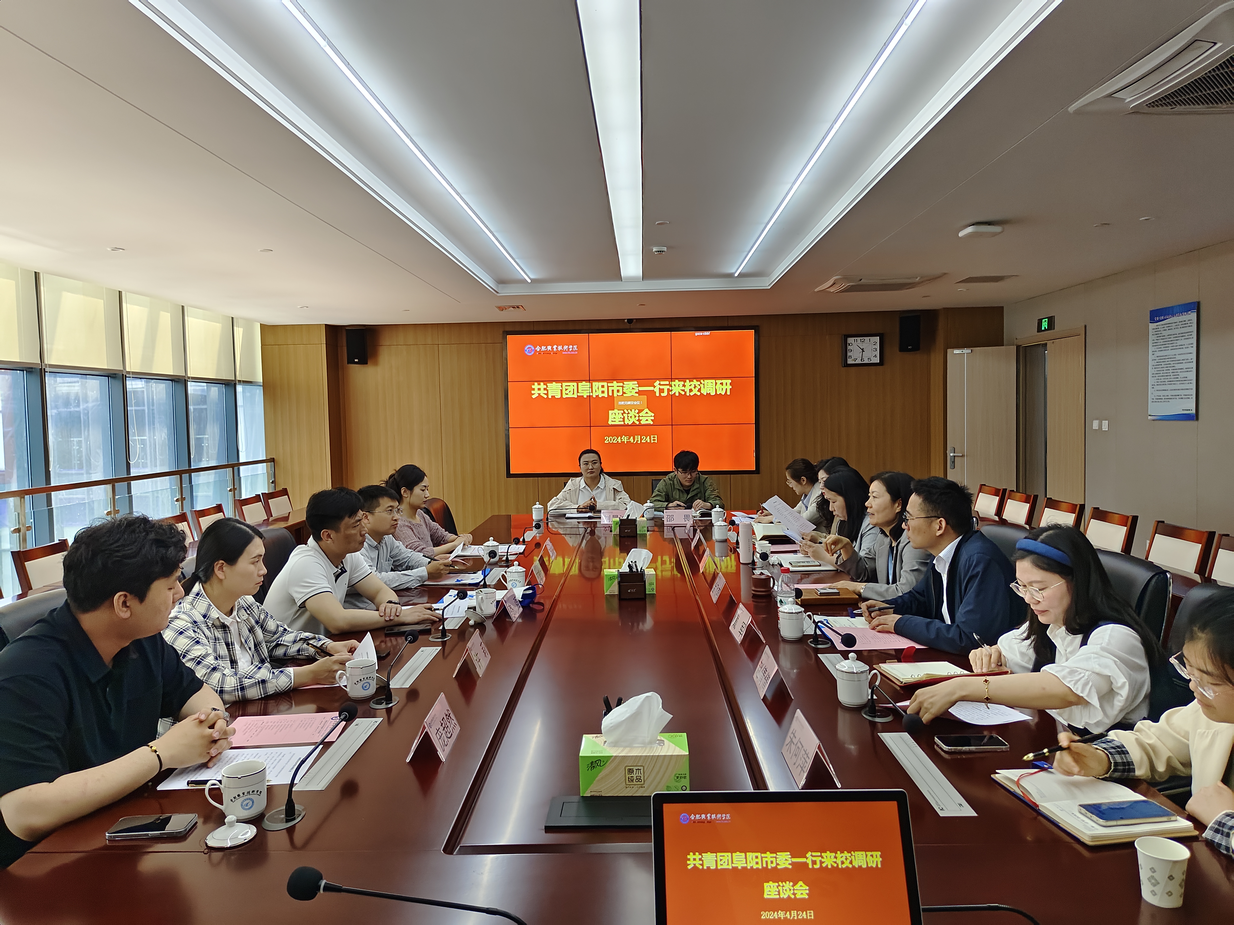 4月24日上午,共青团阜阳市委副书记骆强一行来AC米兰官网开展交流研讨,共青团合肥市委副书记戴军、学校部副部长毕小健、少年部三级主任科员周毅参与走访。AC米兰官网党委副书记金飞燕、团委副书记赵倩倩、团委全体团干以及二级学院团总支代表参加调研会议,会议由赵倩倩主持。