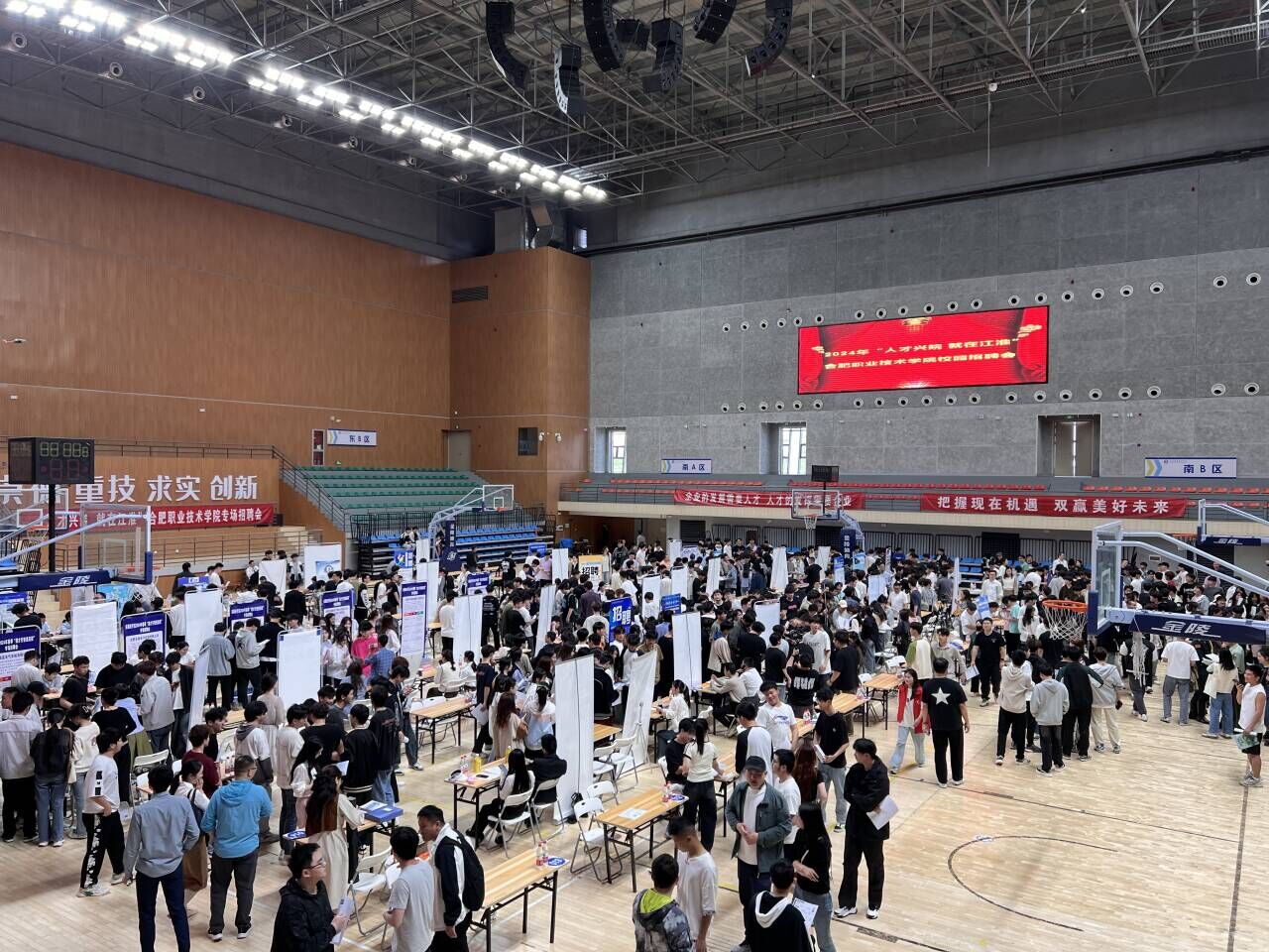 4月24日,2024年 “人才兴皖 就在江淮”校园招聘会在AC米兰官网体育馆(汇心湖校区)举办。新站高新区、庐江、肥东、安巢经开区等人社部门组织67家企业参会,民建合肥市委组织30家企业参会。