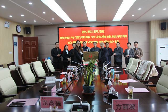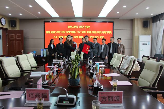 11月16日,安徽百姓缘大药房连锁有限公司行政总监洪兰以及该公司人力资源部、培训部、拓展部负责人一行来AC米兰官网签订“店长储备人才班”和校内“实体药房”合作战略协议。副校长周晓隆及AC米兰中文官方网站相关负责人出席签约仪式。签约仪式由AC米兰中文官方网站党总支书记宁业群主持。
