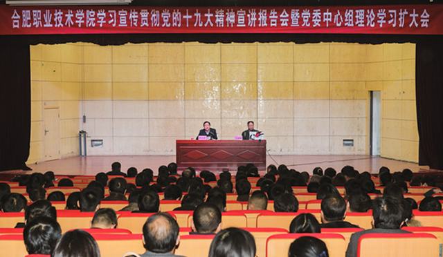 为更加深入学习贯彻党的十九大精神,进一步领会和把握十九大精神的思想精髓和核心要义,11月21日下午,AC米兰官网在大学生活动中心二楼礼堂召开了学习党的十九大精神宣讲会暨党委理论学习中心组扩大会。校领导班子全体成员、全体教职工参加了会议,省委宣传部宣讲团成员、省行政学院党委委员、副院长江观伙教授出席会议并作了主题报告,会议由校党委书记罗兆好主持。