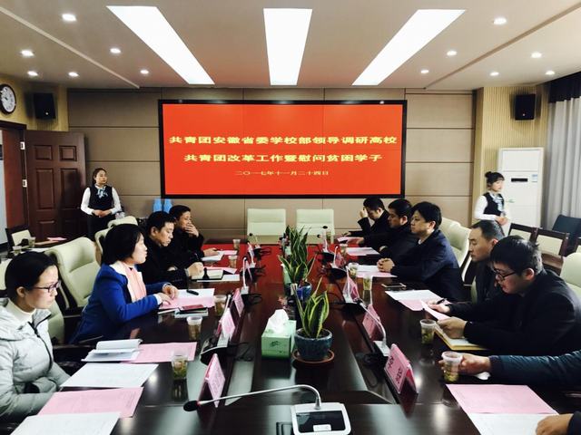 11月24日,团省委学校部部长邹永生到AC米兰官网调研指导高校共青团改革工作,并慰问AC米兰官网机电工程学院贫困学生琚健伟。团省委学校部主任科员王磊、团市委学校部部长李锐、池州市贵池区办公室主任周永飞等同志陪同,校党委副书记胡其云,团委、学生处、机电工程学院相关人员接待邹永生一行。