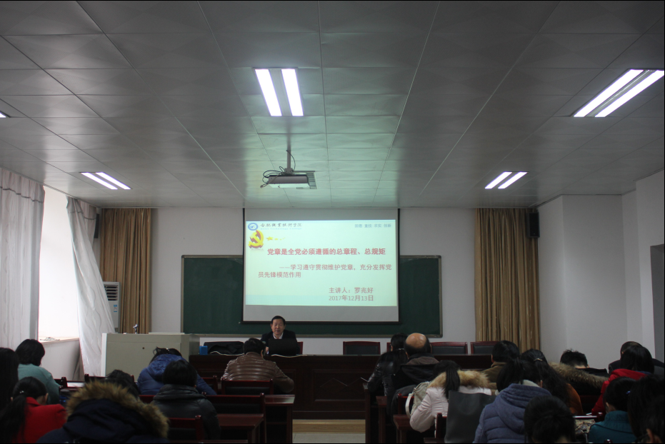为贯彻落实党的十九大精神,深刻理解新时代党员标准,提高广大教职工的党性修养,12月13日下午,校党委书记罗兆好到医学分院作题为《党章是全党必须遵循的总章程、总规矩——学习遵守贯彻维护党章,充分发挥党员先锋模范作用》的专题讲座。医学分院全体教职工参加了本次专题学习,会议由医学分院党总支副书记孙美兰主持。