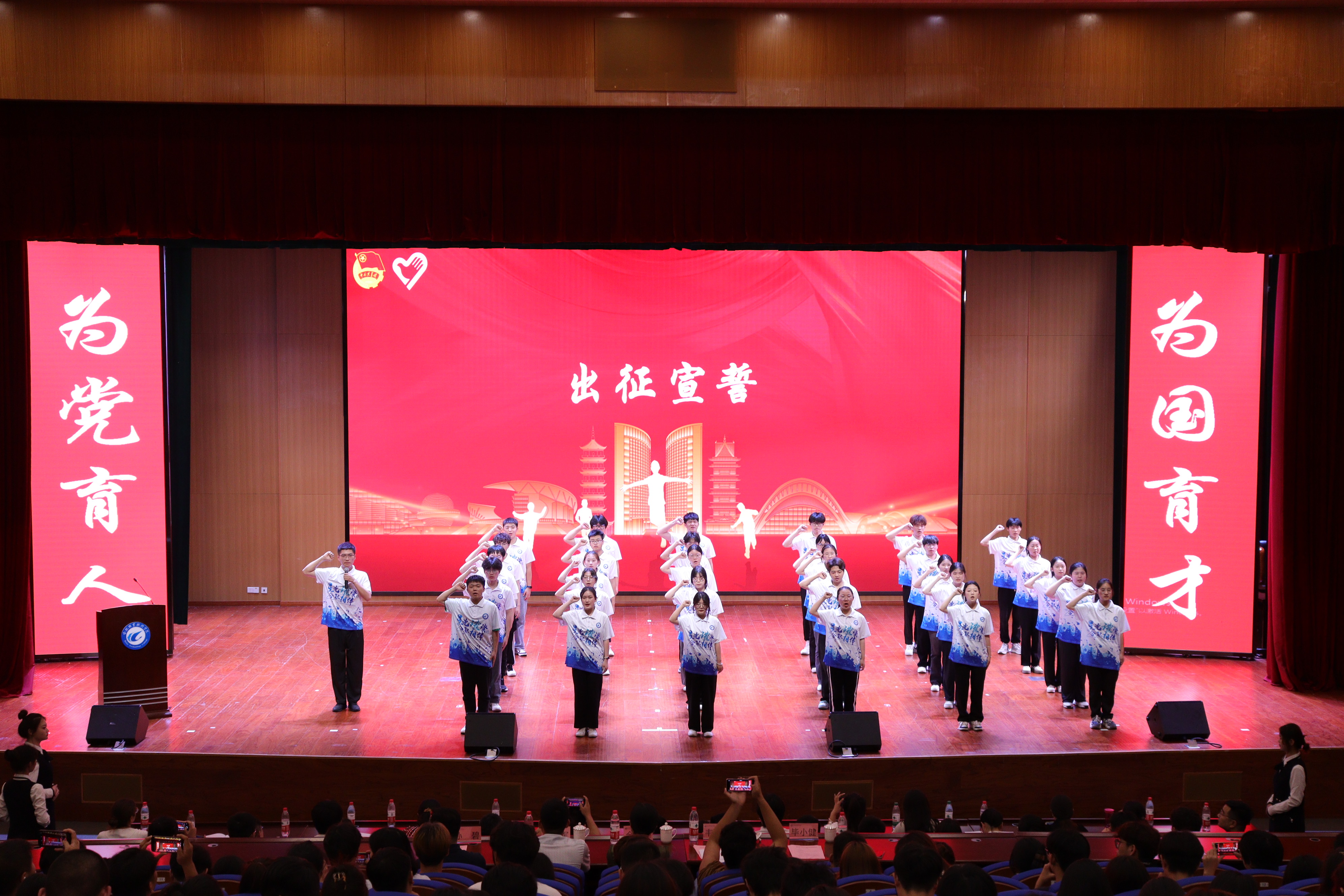 为全面贯彻党的教育方针,落实立德树人根本任务,引导和帮助广大青年学生上好与现实相结合的“大思政课”,在社会课堂中“受教育、长才干、作贡献”,6月21日下午,合肥市大中专学生志愿者暑期文化科技卫生“三下乡”社会实践活动出征仪式在AC米兰官网大学生活动中心顺利举行。校党委副书记金飞燕、团市委副书记戴军、合肥市教育局高教处处长韦学华、中共合肥市委宣传部宣教处二级主任科员孙碧以及各直属院校团委负责人、“三下乡”社会实践团队成员代表共计约500人共同参加此次活动。