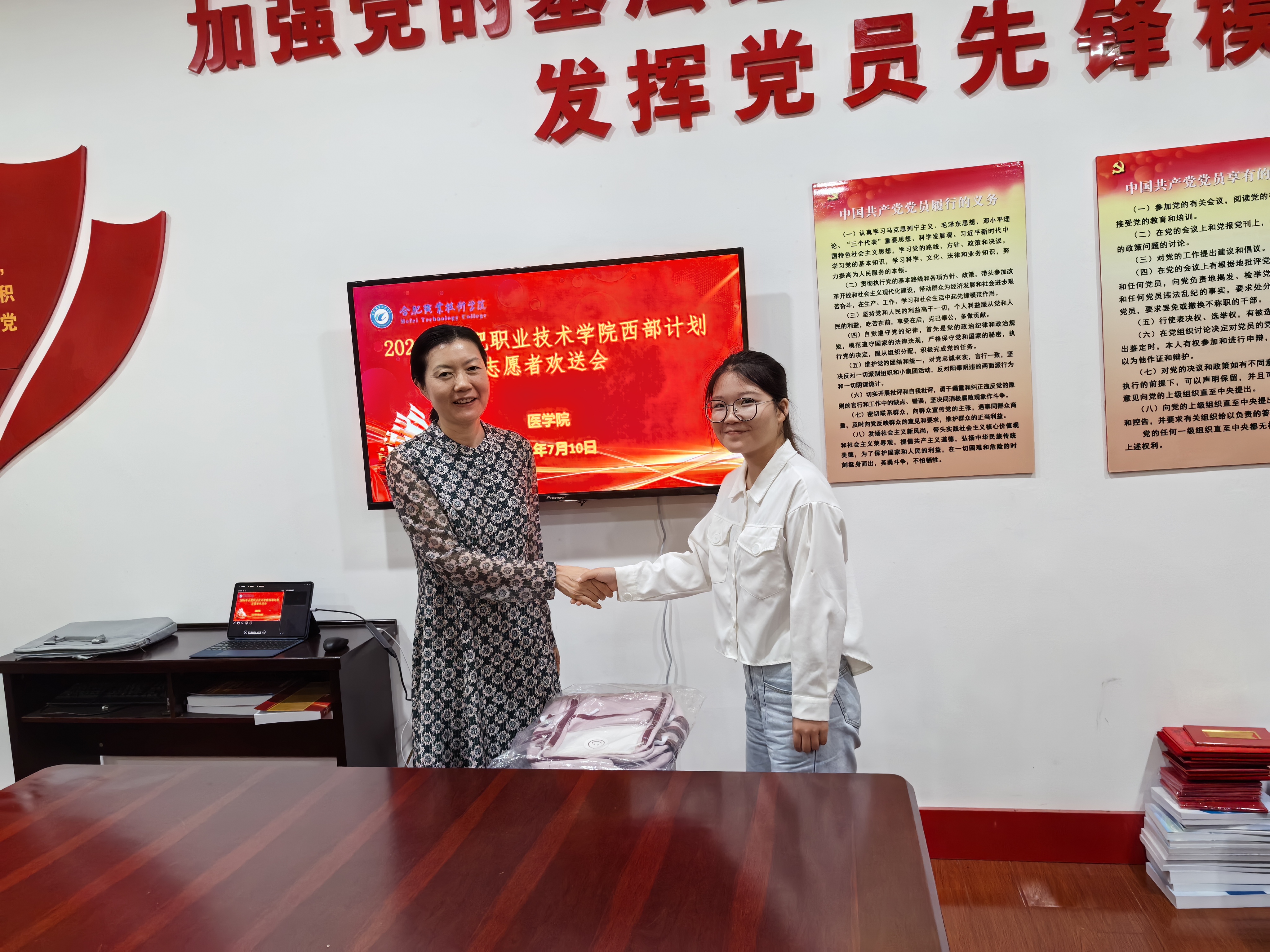 为欢送臧罗兰同学,表彰其在校期间及本次选拔中的优异表现,同时鼓励引导更多合职青年学子投身西部、扎根基层,在为人民服务中实现个人理想和价值,7月10日,AC米兰官网在鼓山校区医学楼会议室召开了2024年西部计划志愿者欢送会。校党委副书记金飞燕,鼓山校区党工委书记、管委会主任谭连生,学生处处长王克勇,校团委副书记赵倩倩来到现场,欢送会由医学院党总支副书记(主持工作)邹华兵主持,医学院相关人员参加。
