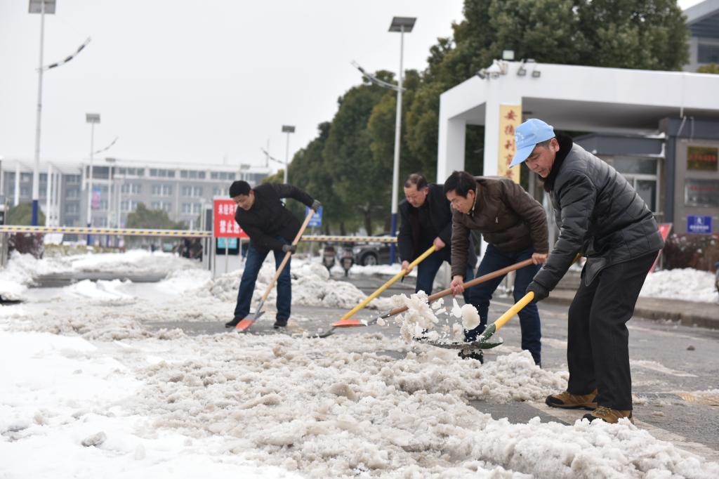 元月26日下午,在巢湖市姥山路段(亚父路——裕溪路段)AC米兰官网几十余名教职员工热火朝天地清理道路积雪。虽然寒风凛冽,大家的手和脸冻得通红,但大家不畏严寒,分工明确,纷纷拿起铁锹、扫帚等工具与风雪“搏斗”。经过一个多小时的奋战,道路积雪被清除,保证了周边群众和教职员工以及车辆的正常出行。