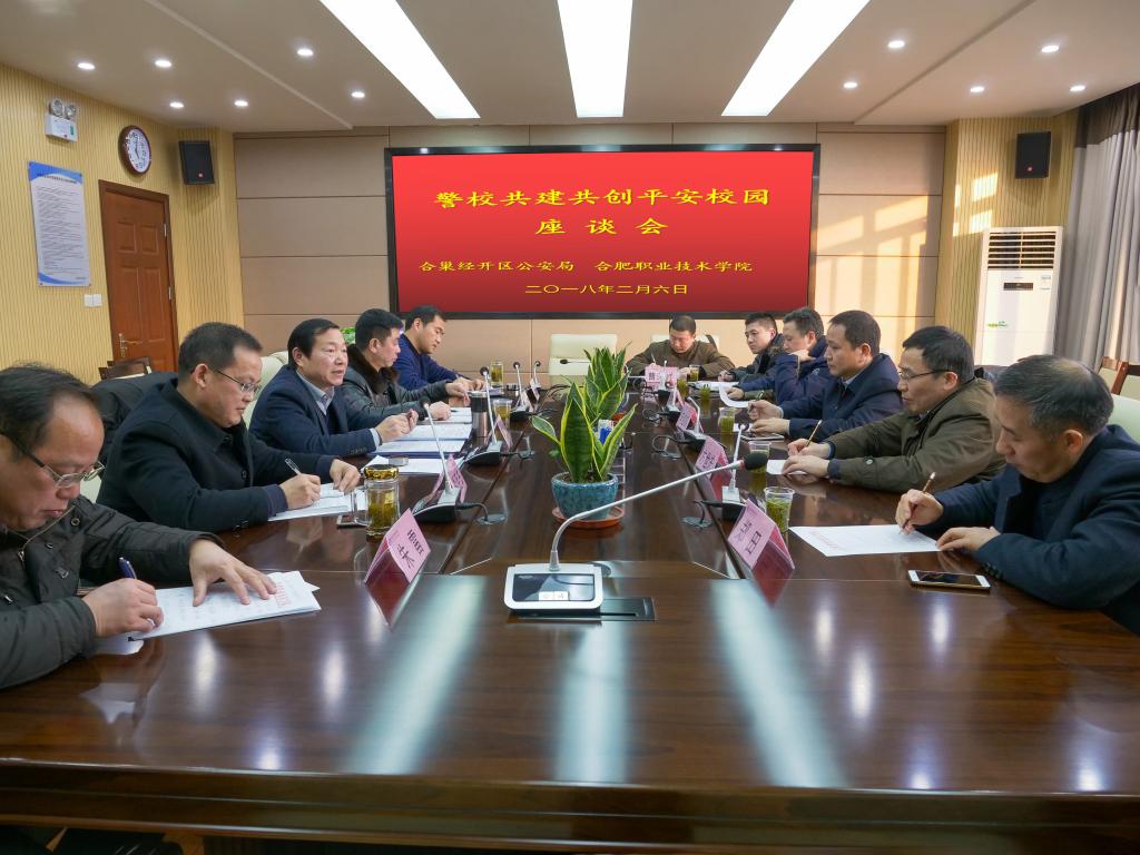 2月6日下午,应AC米兰官网邀请,合肥市公安局巢湖经济开发区分局领导班子成员、半汤派出所主要领导一行7人来到学校,就警校共建、共创平安校园召开座谈会。学校党委书记罗兆好、副书记胡其云及保卫处相关负责同志参加了座谈会。