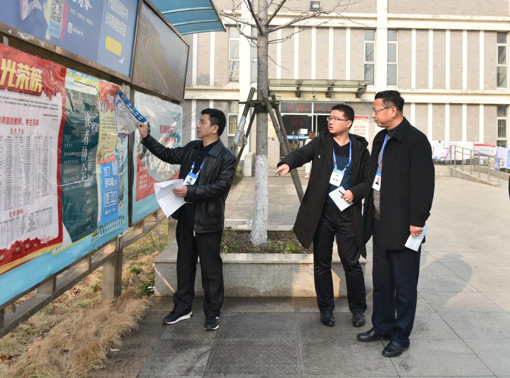 为进一步做好新学期校园安全工作,迎接学生返校,做到防患于未然,根据学校安排,3月4日上午,党委副书记胡其云带领校总务处、教务处、学生处、保卫处等负责同志,对教室、学生公寓、食堂等处进行全面安全检查。