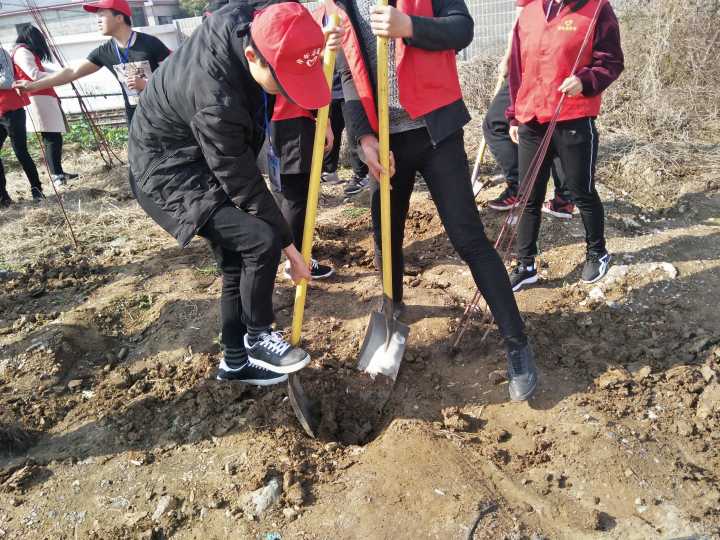 活动当天,青协与鼓山村委会共同挂牌“鼓山青春林”。挂牌仪式后,志愿者们手持铁锹和水桶开始种植树苗。在村干部的指导下,他们三人一组,分工明确,相互协作,配合默契。挖坑、种树、培土、浇水一气呵成。种下的是一棵幼小的树苗,播下的却是一颗保护环境的心,将来长成的是一颗茁壮的大树,增添的是城市的一片新绿。志愿者们不觉疲惫地种着树,他们额角上的汗水在阳光下折射出耀眼的光彩。时间从志愿者手中的铁锹下溜走,树苗也很快被种完。
