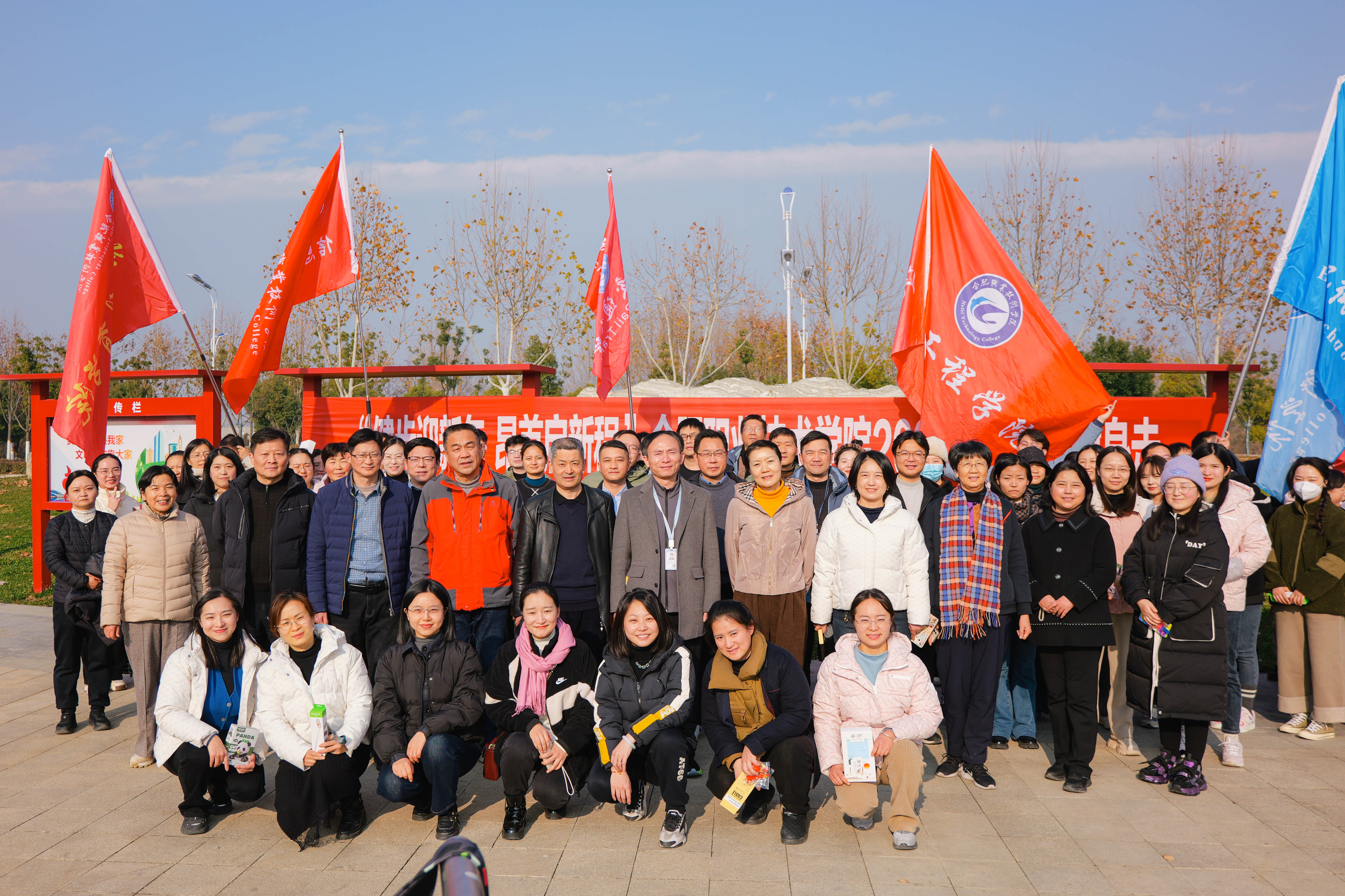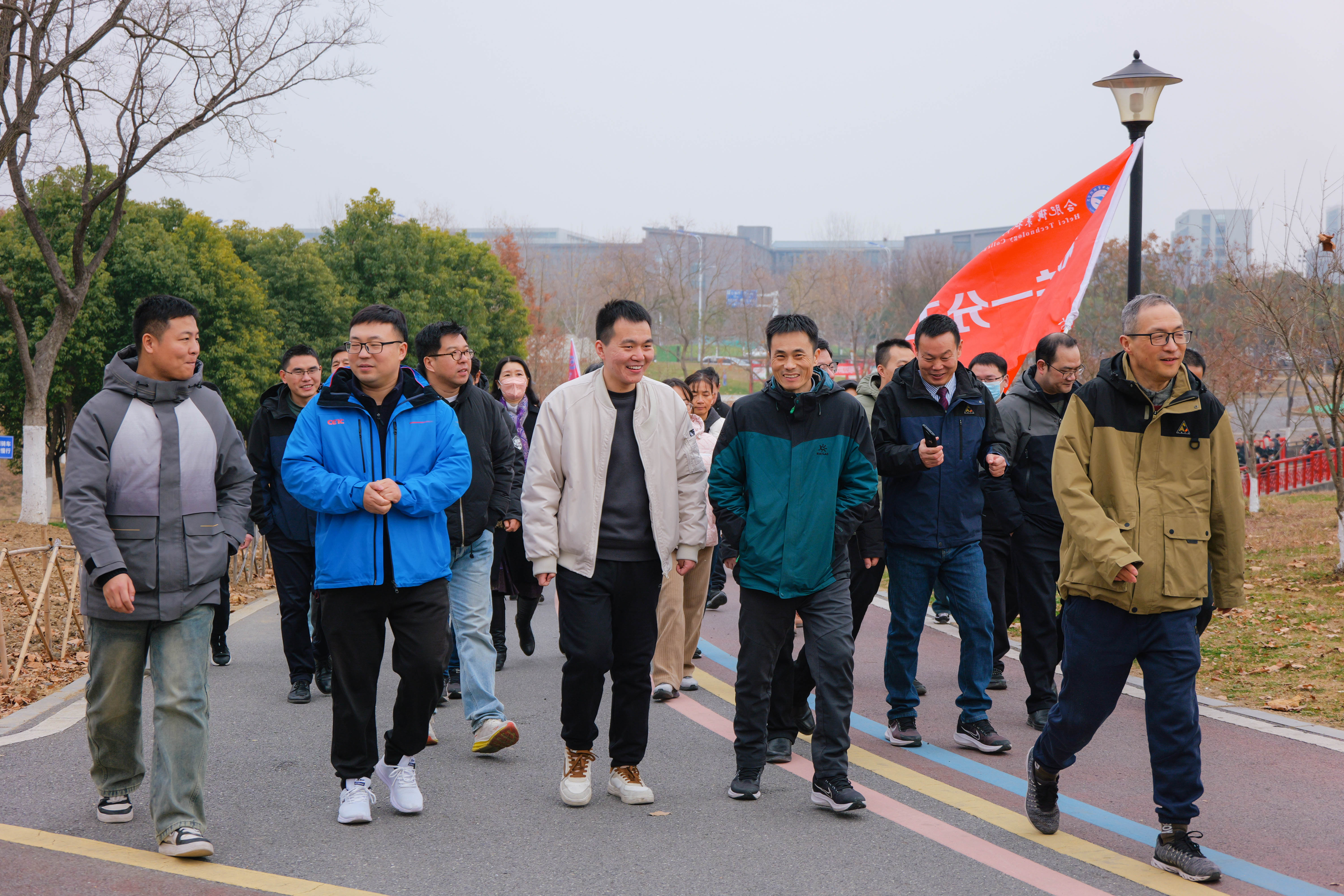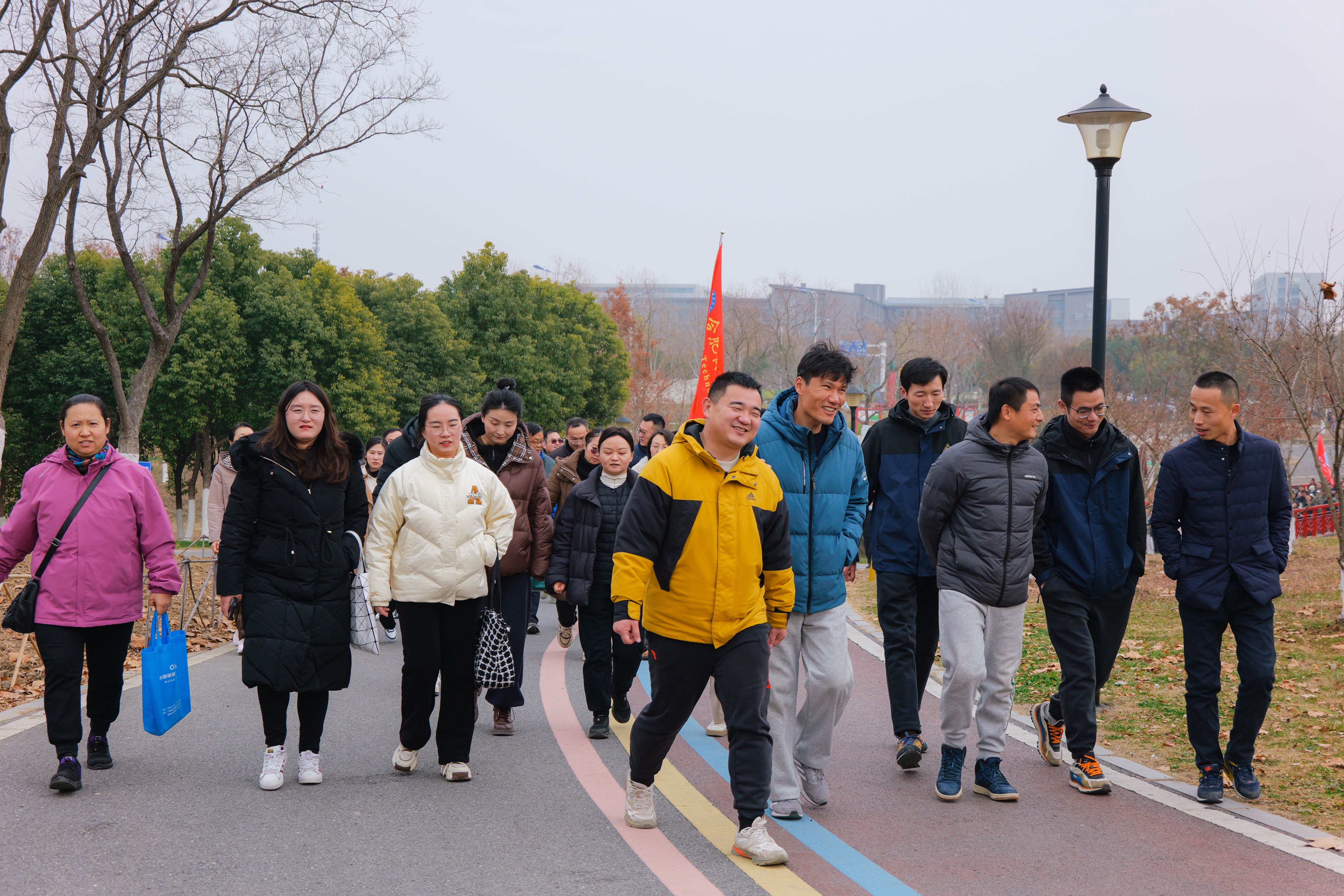 队旗飘扬,三百余名教职工沿着打卡路线阔步前行。伴随着大自然的清新气息,欣赏着周边的冬日美景,在轻松愉悦的气氛里,大家分享着过去这一年工作中的收获,表达着对新一年的美好祝愿和憧憬