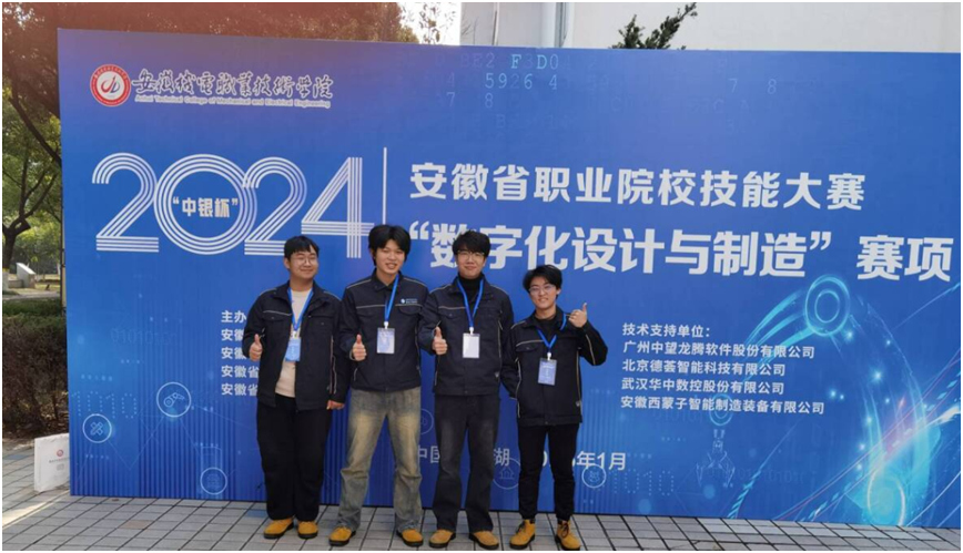 1月5日,安徽省职业院校技能大赛“数字化设计与制造”赛项落下帷幕,AC米兰官网代表队依托出色的职业技能,在众多的参赛队伍中脱颖而出。由机电工程学院陈森林、徐滨老师指导的张世杰、张瑞两名同学获得学生组一等奖,陈森林老师获得教师组二等奖。