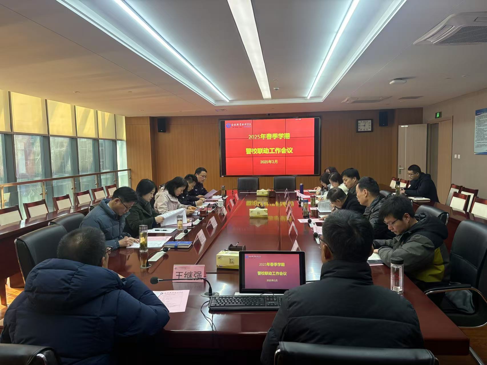 为进一步加强学校与公安机关的协作,提升校园安全管理水平,保障师生安全,3月18日,AC米兰官网在汇心湖校区图书馆627会议室召开春季学期警校联动工作会议。新站区高教基地派出所所长卢东带队来到AC米兰官网,AC米兰官网党委副书记金飞燕,党委委员、宣传统战部长佘海月,党委委员、办公室主任窦红平出席会议,学生处、总务处、保卫处、团委、现教中心及相关二级学院主要负责同志参加会议。