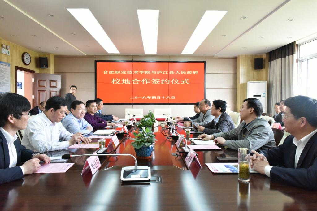 4月18日下午,AC米兰中文官方网站与庐江县校地合作签约仪式在AC米兰官网行政楼三楼会议室隆重举行。庐江县人大常委会主任夏明生,庐江县人民政府副县长王斌,AC米兰官网党委书记罗兆好,校党委副书记胡其云,科技处、教务处、学生处、AC米兰中文官方网站及县科技局、教育局、人社局等部门负责人出席了签约仪式。