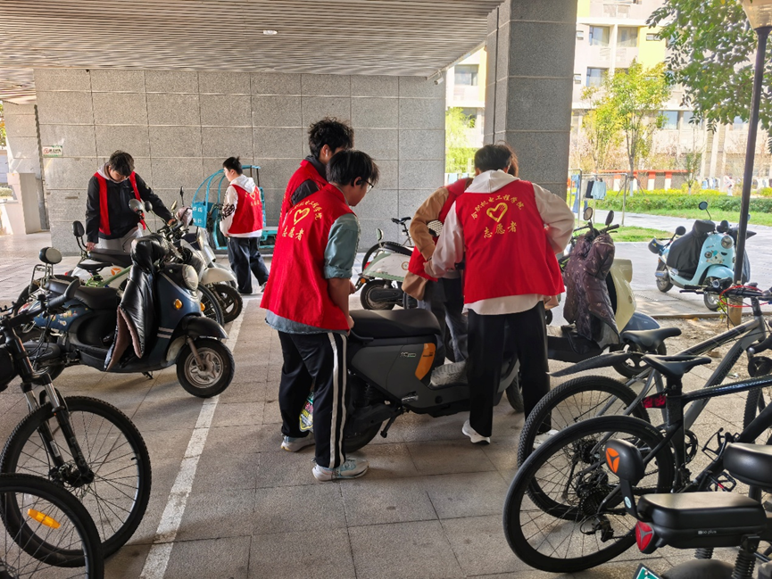 求实奉献,行动见证。校园热土处处跃动实干身影,学子们以实干的脚步诠释奉献的真谛。轨道交通学院志愿者化身“书香卫士”,累计整理图书馆藏书超过两千余册,为在校师生查阅所需文献提供便利;经贸旅游学院开展“微尘行动”,20名志愿者历时4小时完成经贸楼所有实训室和教室的深度清洁,特别针对多媒体设备积尘问题,运用专业仪器除尘保养,让教学环境焕发新颜。机电工程学院“小螺钉”志愿服务队聚焦生活痛点,分组行动,开展包括光盘行动、电动车摆放整理、整理晾晒被褥等多项志愿服务活动,解决了校园实际问题。
