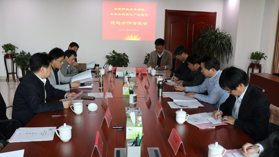 4月16日、17日,校党委书记罗兆好、校党委副书记胡其云带领教务处、科技处、学生处、信电学院、医学院、机电学院等部门负责人分别赴阜合产业园区和肥西县人民政府洽谈校地合作事宜。