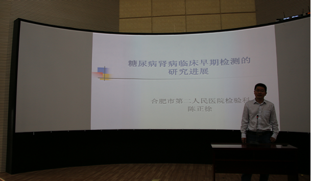 4月25日下午,由学校科技处主办,医学院医检教研室承办的“行业专家进校园”系列学术讲座——《糖尿病肾病临床早期检测的研究进展》专题报告会在图书馆二楼学术报告厅举行。讲座由合肥市检验质量控制中心主任、合肥市第二人民医院广德路院区检验科主任、副主任技师、硕士生导师陈正徐主讲。讲座由医检教研室主任余先祥主持。