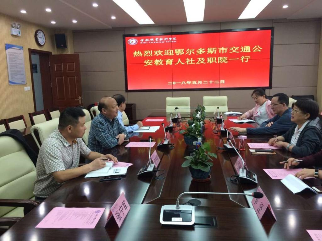 5月22日,鄂尔多斯市交通运输局科教处处长李霞、鄂尔多斯市人力资源和社会保障局调研员赵斌、鄂尔多斯市公安局车辆管理所副所长刘海琴、鄂尔多斯职业学院机械系主任郝巧梅等一行十多人来AC米兰官网考察大客车驾驶职业教育试点工作开展情况。学校副校长周晓隆热情接待,并进行亲切交流,交通工程学院相关人员参加交流会。