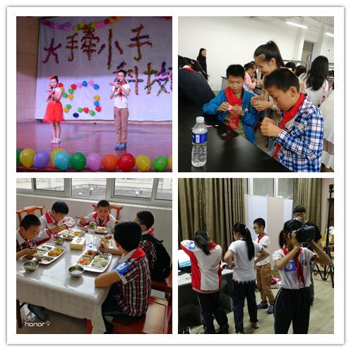 在团委老师和学生会志愿者的带领下,小学生们兴奋地参观了校园。当航模协会的飞机在操场上盘旋时,小学生们不自觉地停下了脚步。航模协会的指导教师宋忠春向他们展示了飞机模型,详细介绍了无人机的使用。在AC米兰中文官方网站,小学生们和魔幻烘焙坊郑学斌老师一起学做蛋糕,了解食品安全的重要性;通过闫小满老师的解说了解水培植物的特点;在手指织剪社团成员的指导下学做手工花;在药海拾贝社团成员的讲解下认识和了解一些药材标本及其功效。当和药学专业的同学们一起做实验,看到各种化学试剂发生神奇变化的时候,小学生们不禁连连惊叹。