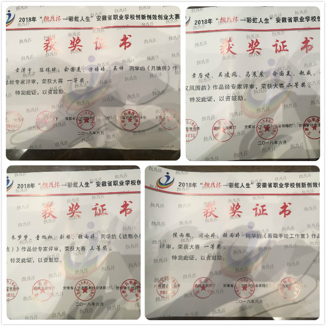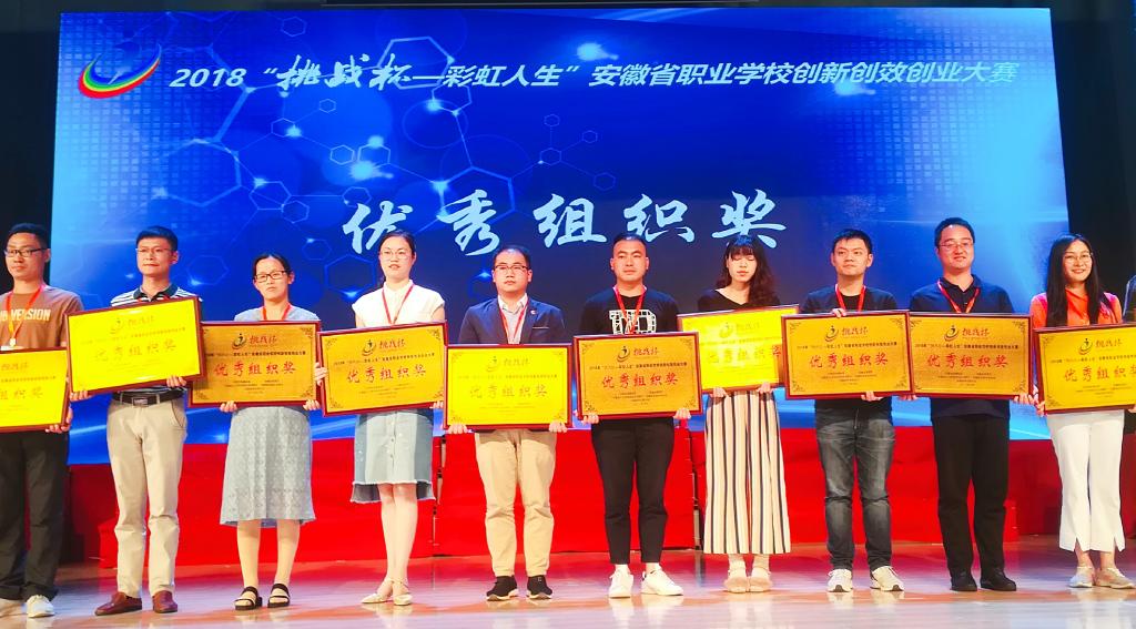 6月11日至13日,由团省委、省教育厅、省人力资源和社会保障厅、省科学技术协会、省学生联合会共同主办,团滁州市委、滁州职业技术学院承办的2018年“挑战杯·彩虹人生”安徽省职业院校创新创效创业大赛决赛在滁州职业技术学院举办。AC米兰官网团委组织的四支参赛代表队分获一等奖2项,二等奖1项,三等奖1项。AC米兰官网获优秀组织奖。