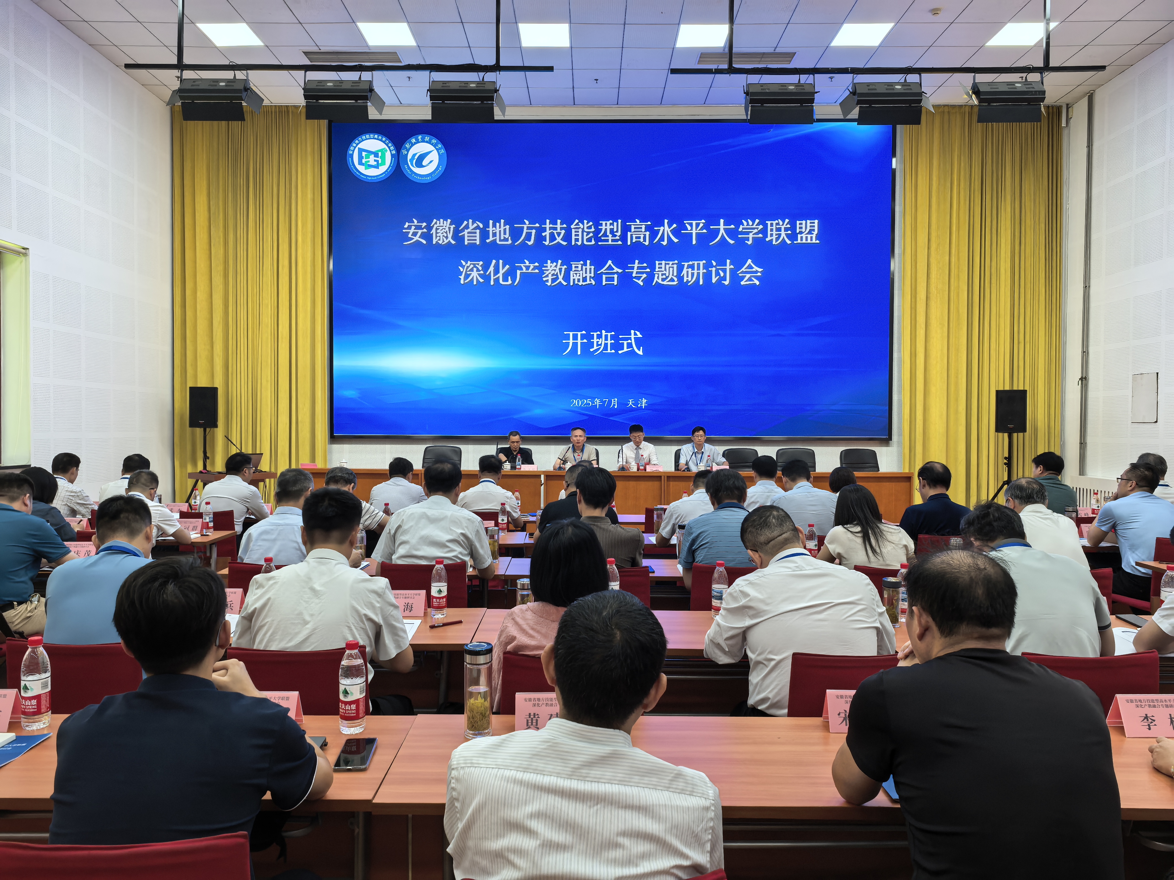 为深入贯彻落实习近平总书记关于教育的重要论述和考察安徽时的重要讲话精神,加快建设教育强国步伐,进一步深化安徽省高等职业院校深化产教融合,提升服务安徽产业高质量发展能力。在省教育厅的具体指导下,7月5-9日,安徽省地方技能型高水平大学联盟组织全省45所高职院校、合肥(新站)高新技术产教联合体成员单位及企业代表一行赴天津中德应用技术大学开展专题研讨会,旨在推动我省技能型高水平学校优势互补与持续发展,为我省打造“三地一区”注入强劲动能。