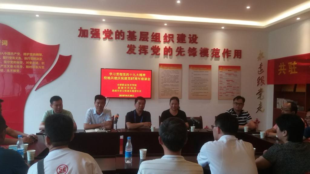 在中国共产党成立97周年即将来临之际,为加强校地联系,深化校地共建,校党委副书记胡其云与巢湖市环保局、亚父街道东炮营社区负责人在经贸旅游学院党员活动室召开座谈会。学校组织部、宣传部、团委、思政课部相关人员参加座谈会。
